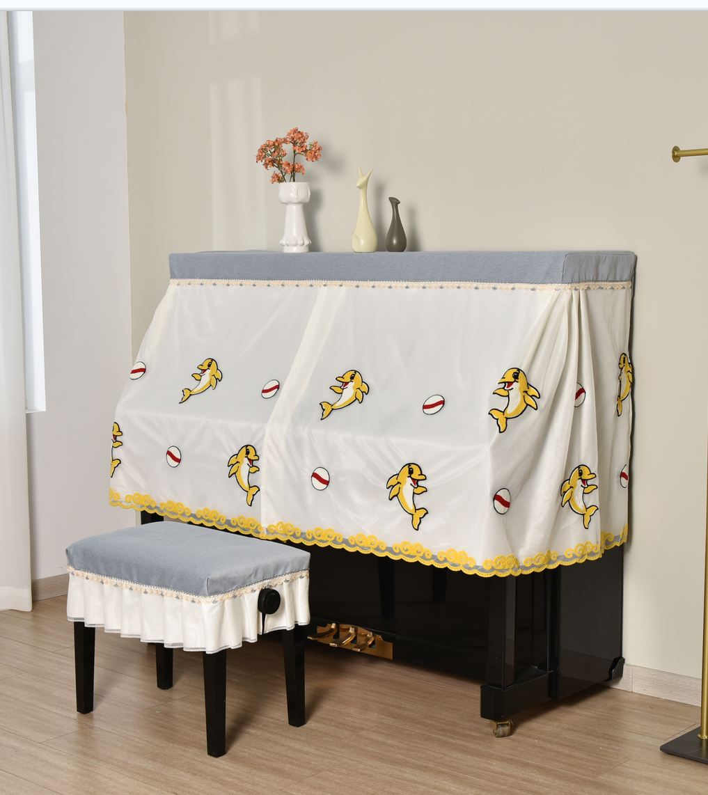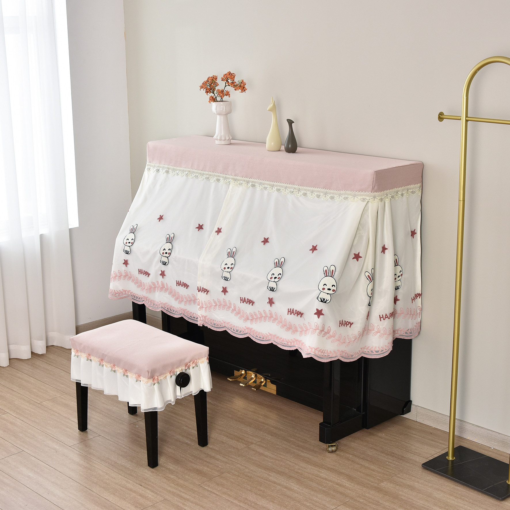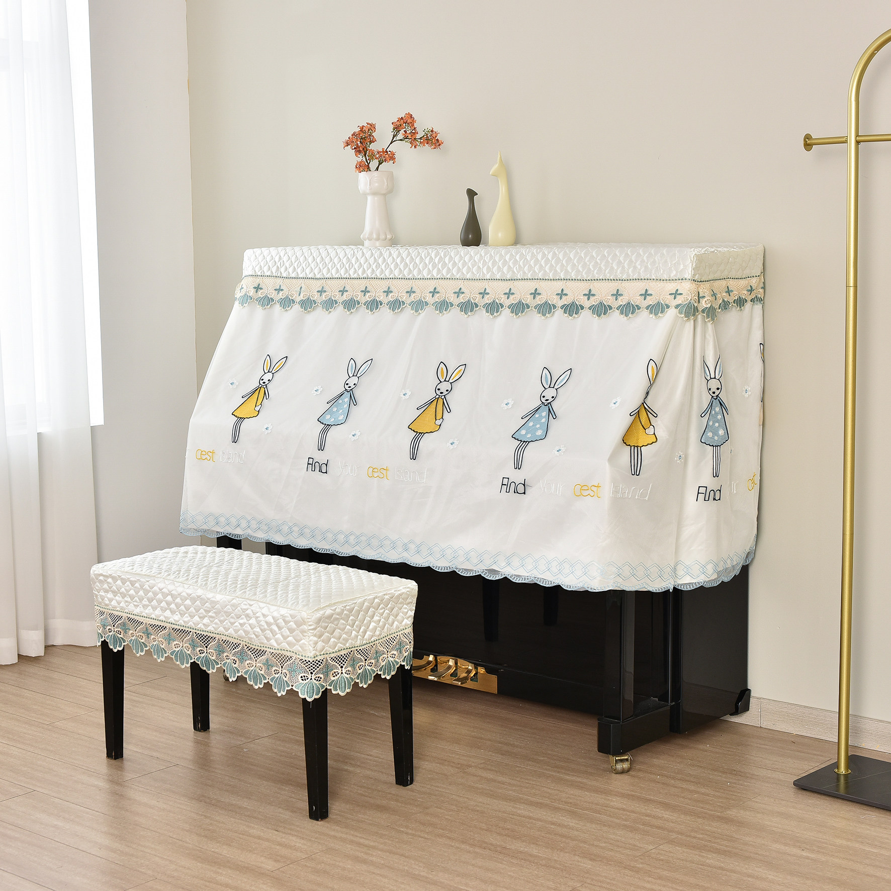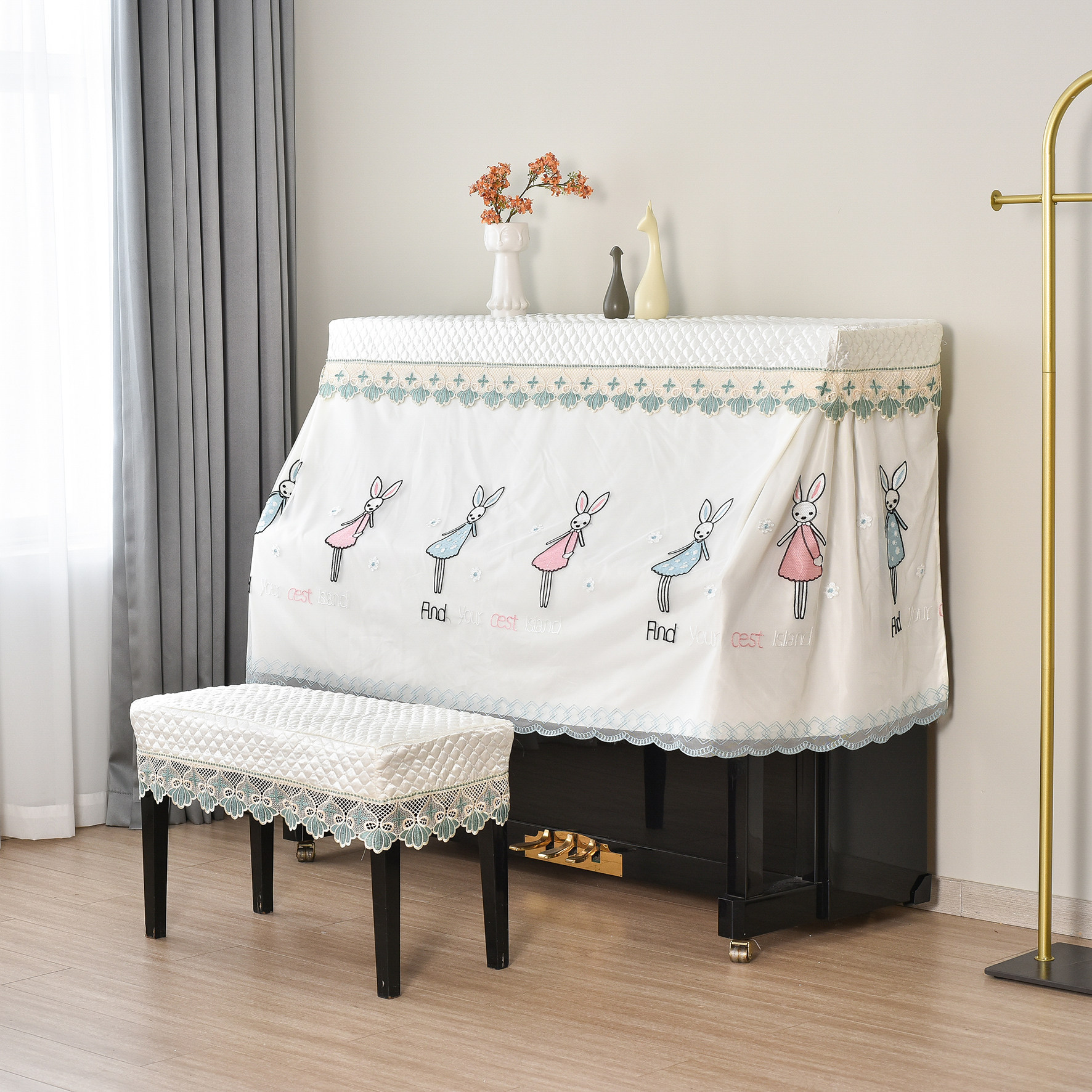 现代简约钢琴罩双层蕾丝卡通防尘布艺半罩钢琴盖布出口品质钢琴罩