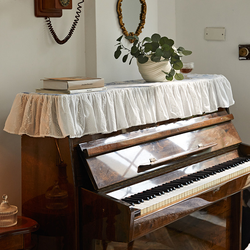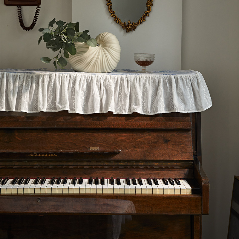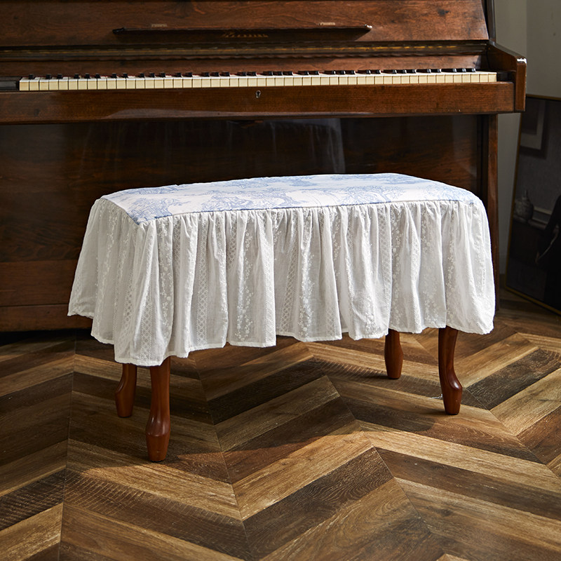 钢琴罩法式高端双人琴凳套罩刺绣荷叶边装饰琴罩通用防尘半罩盖布