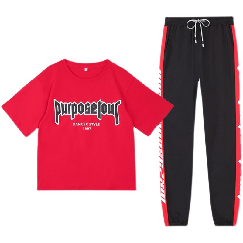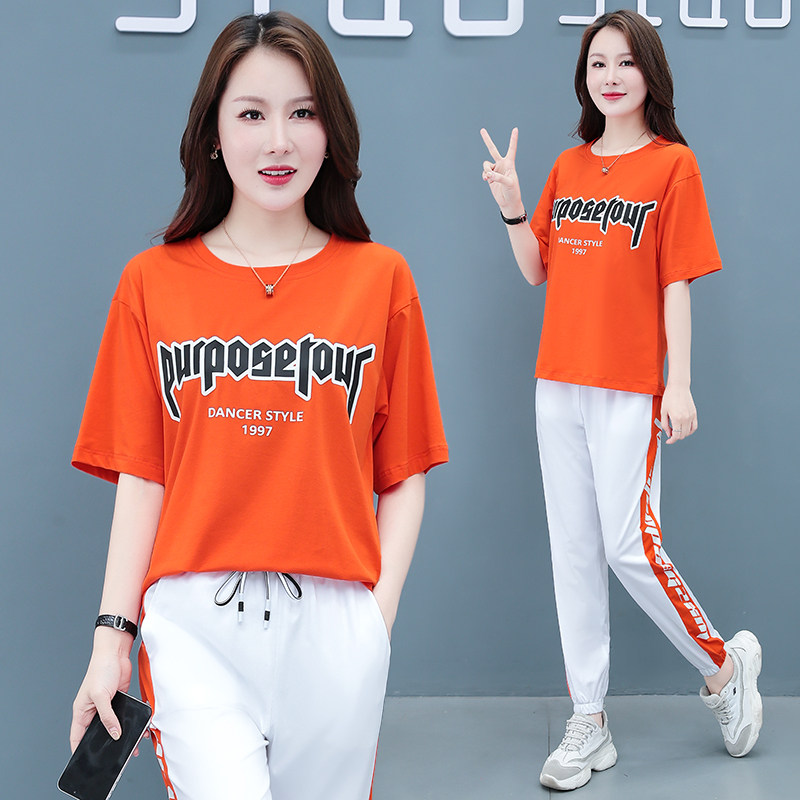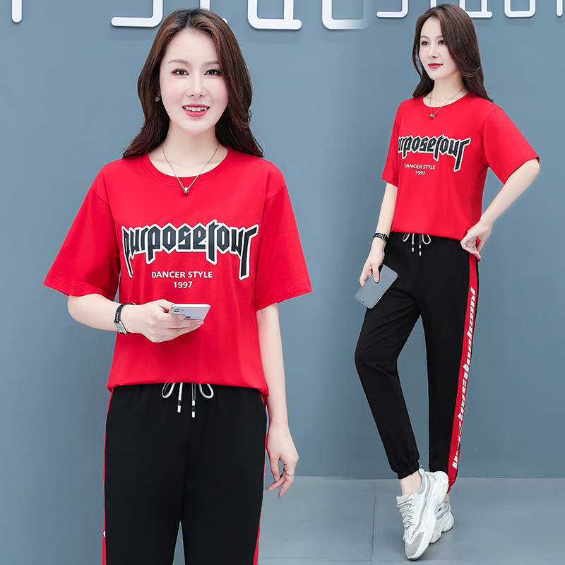 杨丽萍健身广场舞服装新款纯棉套装女士夏季休闲运动大码跳舞服