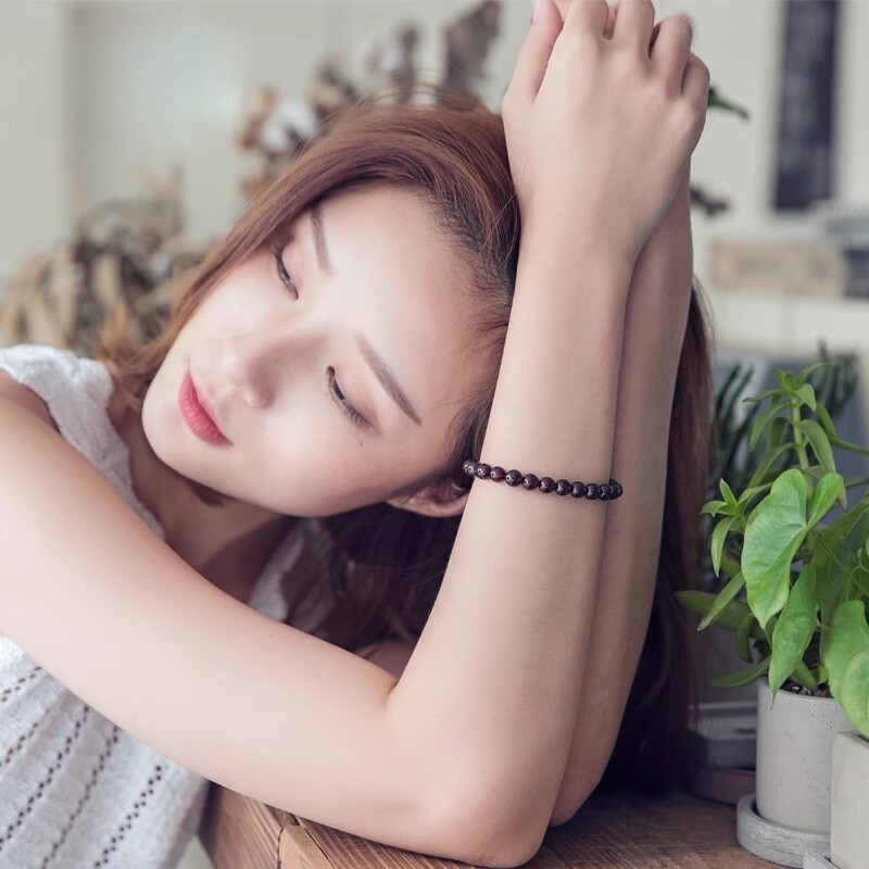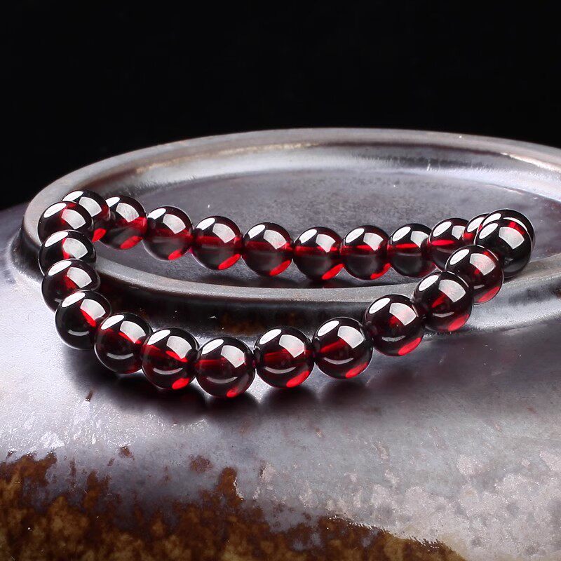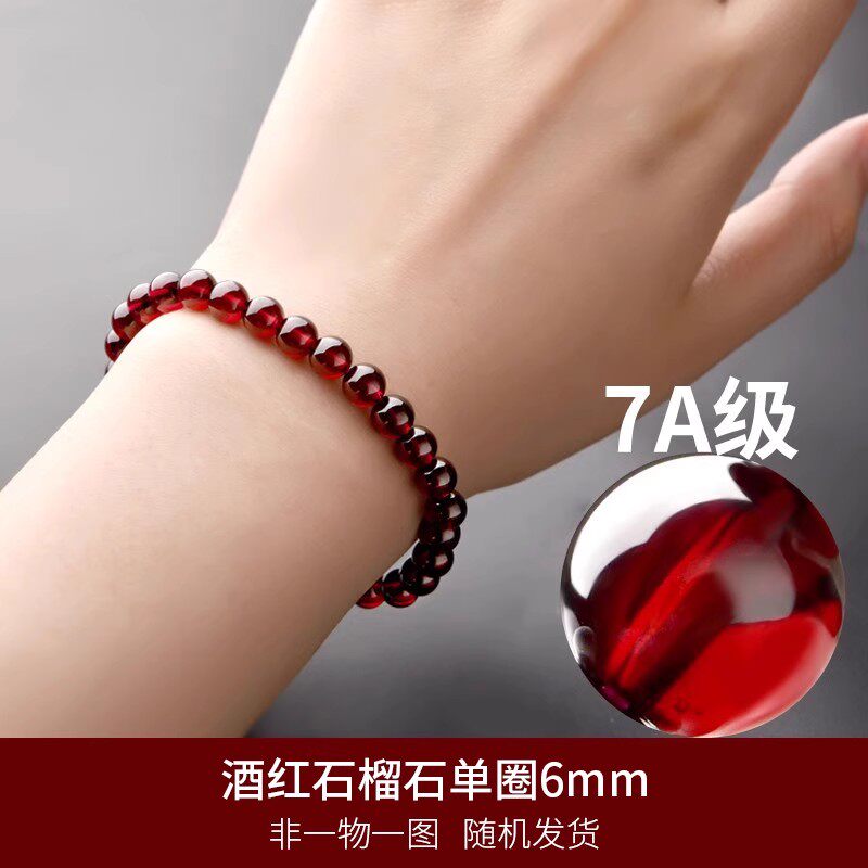原创丨天然酒红石榴石手链红宝石水晶手串男女饰品转运送礼物品