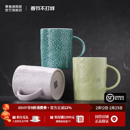 景德镇官方陶瓷浮雕家用中式下午茶咖啡杯大容量水杯高颜值送礼
