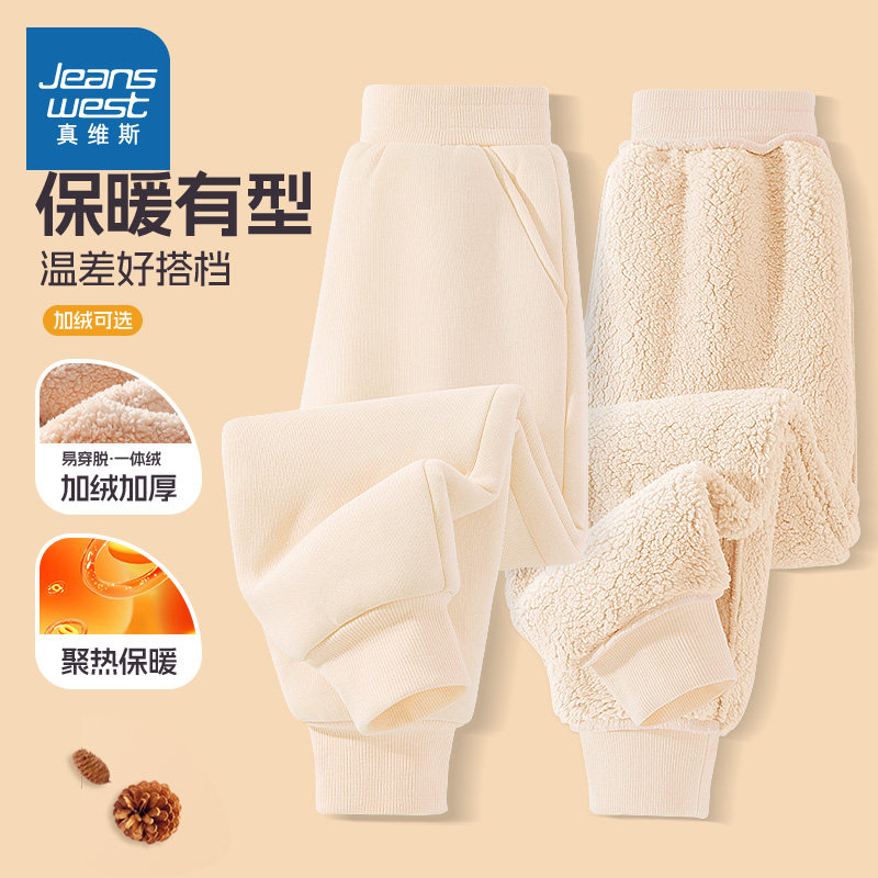 真维斯童装儿童加绒裤子秋冬款女童羊羔绒长裤女大童一条过冬棉裤