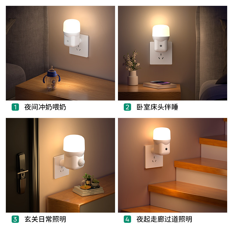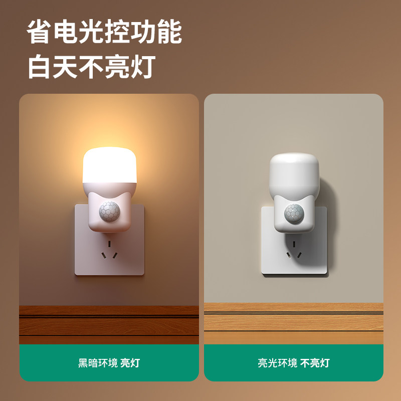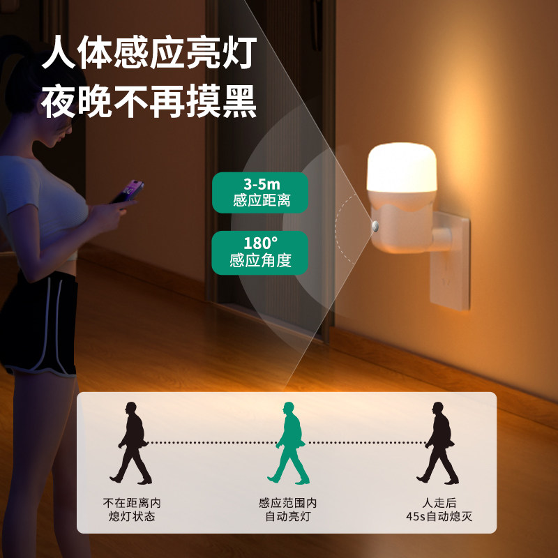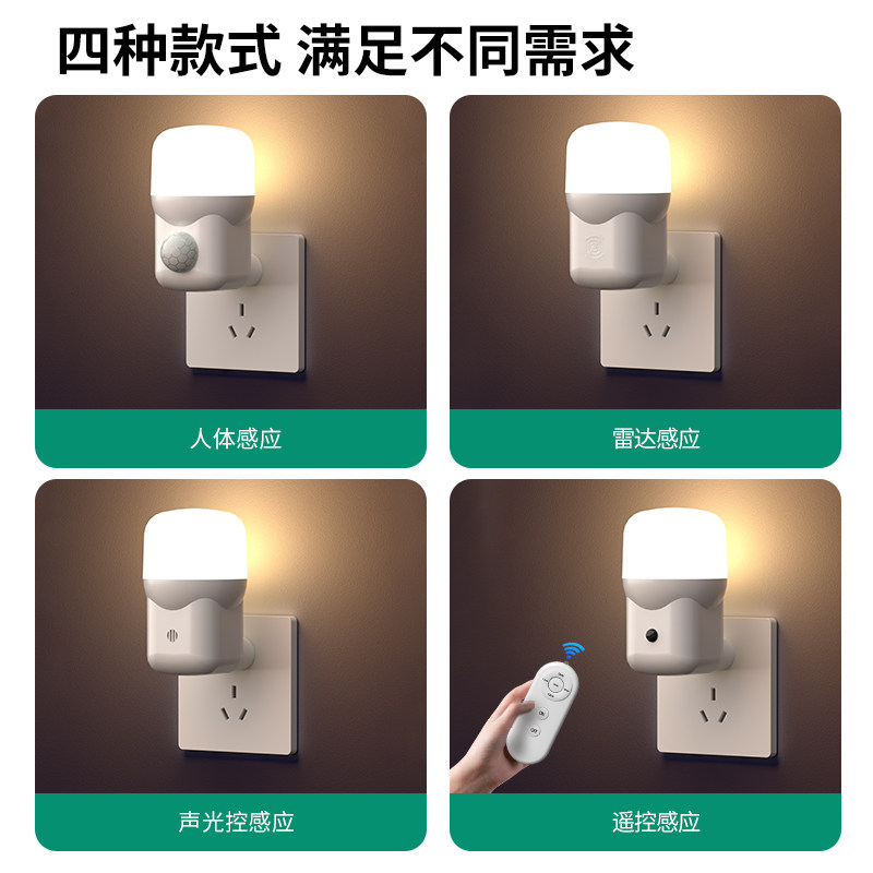 led智能灯两插直插式一体遥控卧室床头人体感应灯夜间冲奶小夜灯