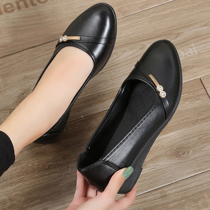 春秋妈妈鞋单鞋软底舒适女士新款平底女鞋浅口中跟中老年坡跟皮鞋