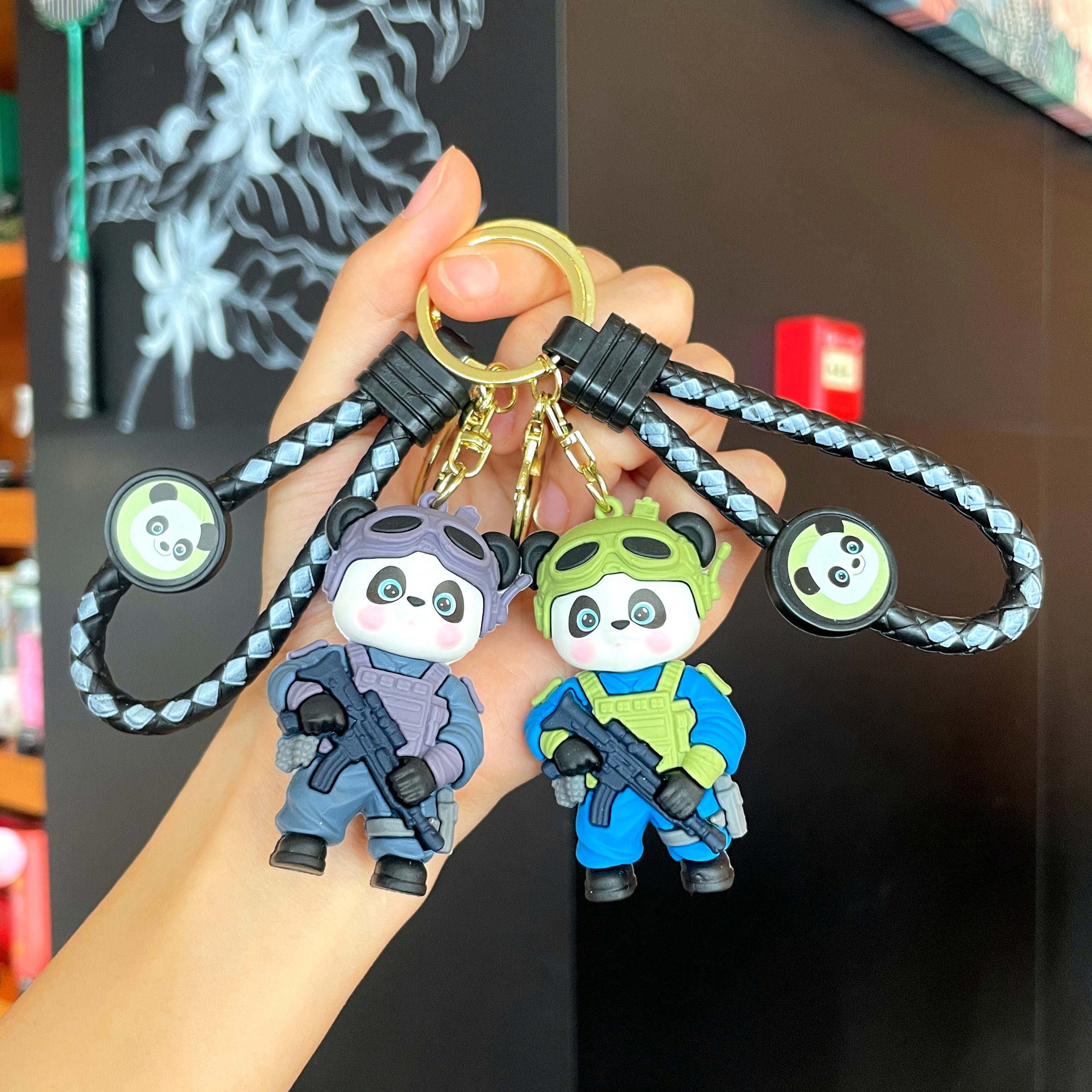 武警熊猫钥匙扣背包小挂件伴手礼