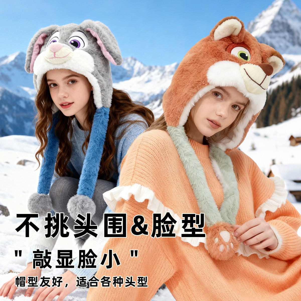 疯狂动物城朱迪尼克动耳帽耳朵会动闺蜜迪士尼正版秋冬女儿童帽子