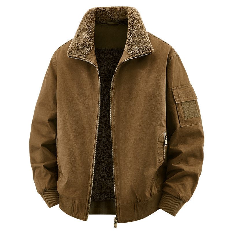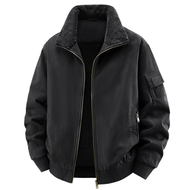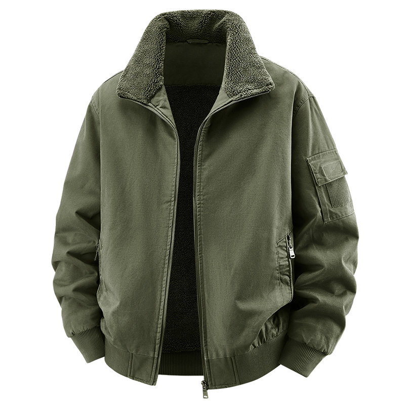秋冬季纯棉夹克男加绒飞行员外套宽松休闲男士立领工装夹克衫耐磨