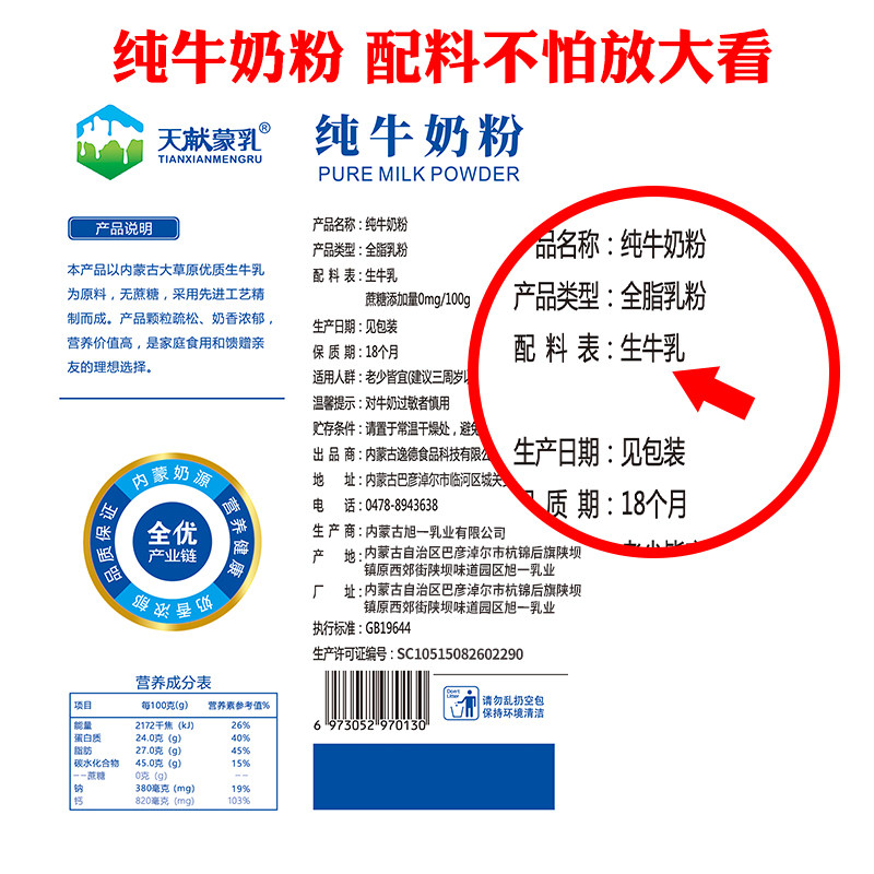 内蒙古纯牛奶粉高钙高蛋白无添加