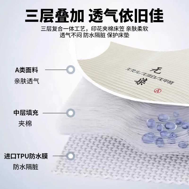 A类防水隔尿夹棉床笠四季通用2026新款席梦思床垫保护罩防尘床罩