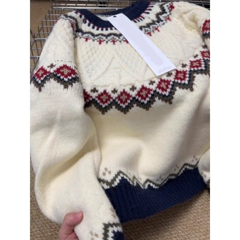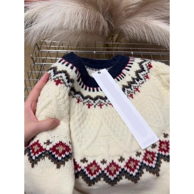 慵懒白色费尔岛毛衣女秋冬加厚宽松高级感可外穿内搭套头针织上衣