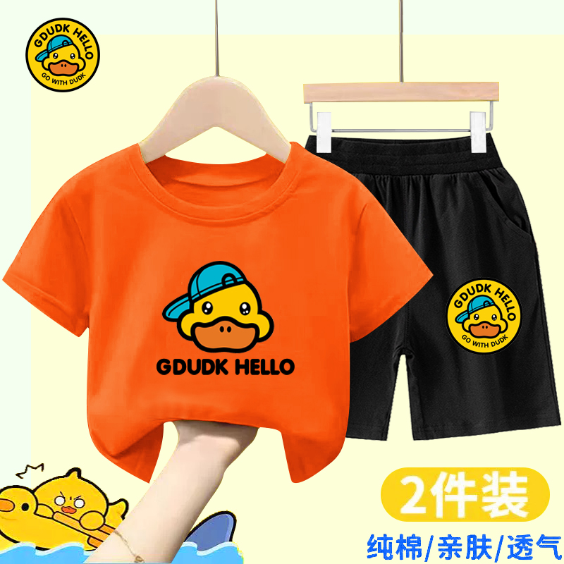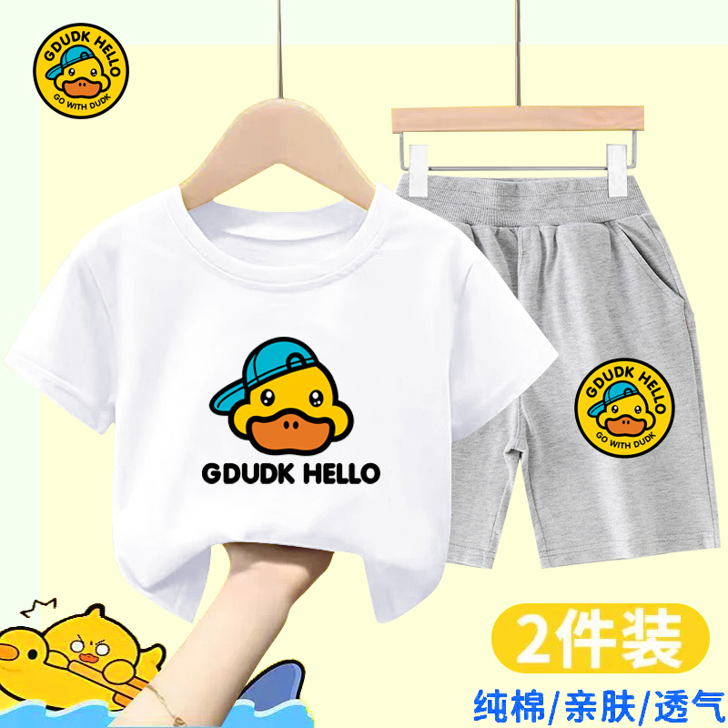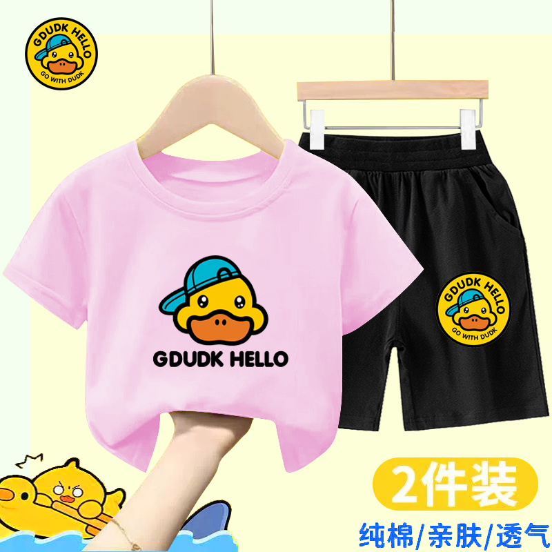 小黄鸭官方旗舰店儿童短袖t恤套装2025新款男女童6洋气夏装短裤潮