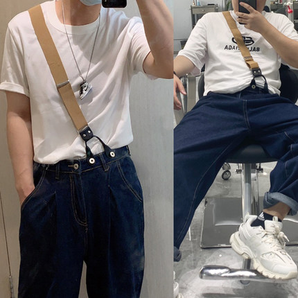 2023新潮装男士背带时尚百搭个性裤子吊带纽扣可拆卸牛仔裤带肩带