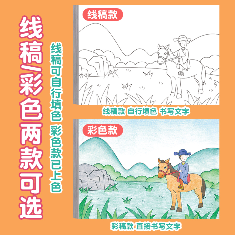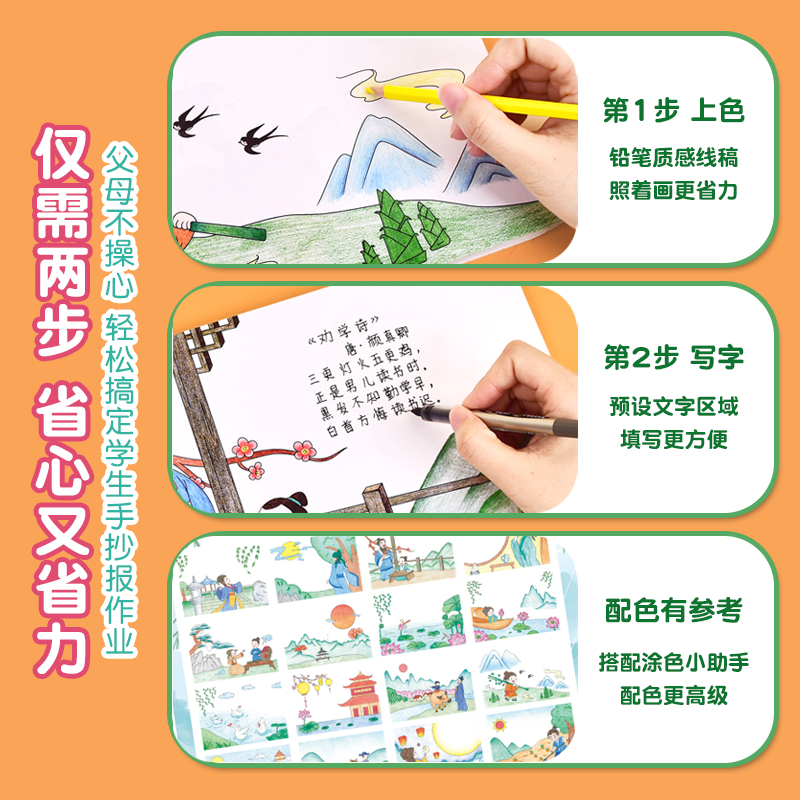 手绘古诗词配画a4手抄报模板大全小学生读书小报专用纸加厚纸张空白填色涂色线稿彩色古代唐诗素材黑板报神器