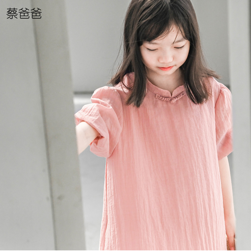 蔡爸爸原创童装旅行裙子 女童夏装中式旗袍粉色天丝锦连衣裙692