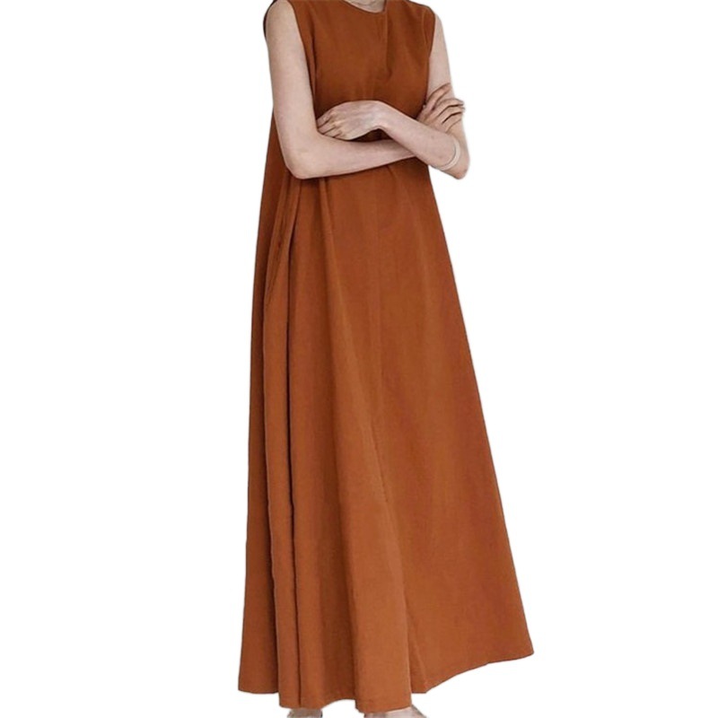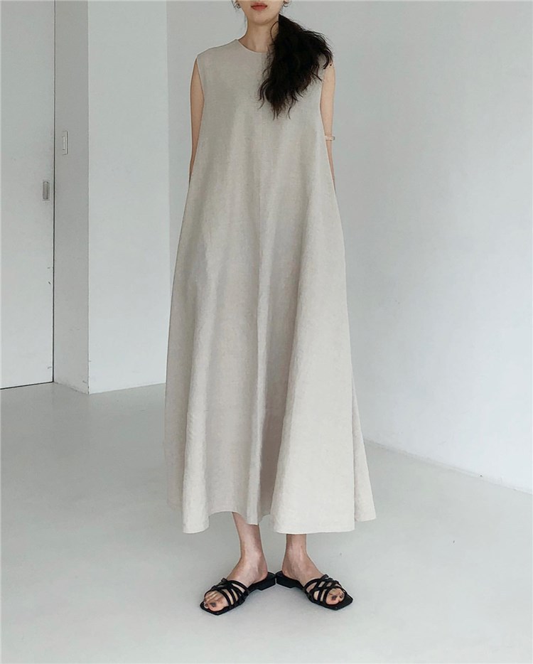 连衣裙女夏2024新款天丝棉麻苎麻铜氨丝一片式及脚踝无袖背心长裙