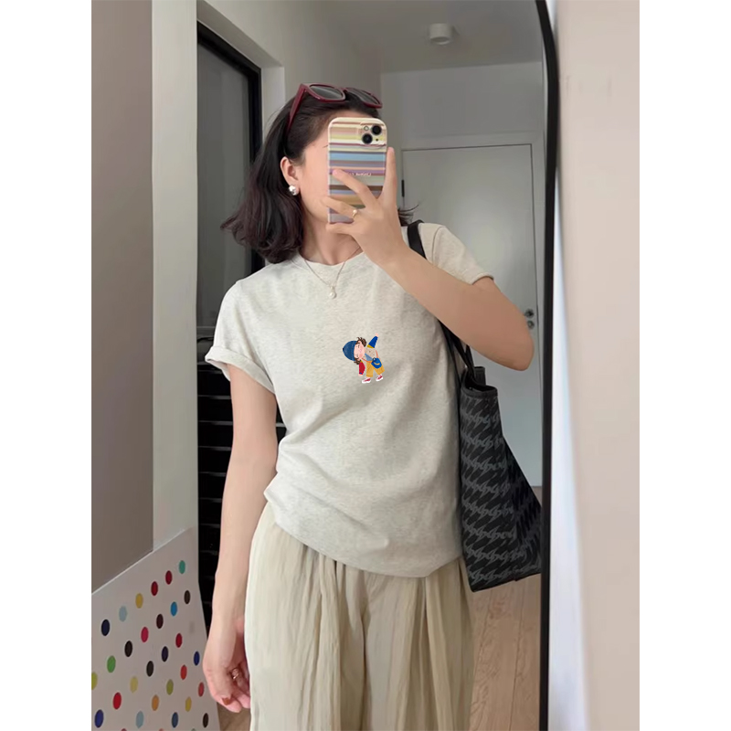 灰色短袖正肩女t恤夏季2025新款修身收腰显瘦上衣女胖mm大码女装