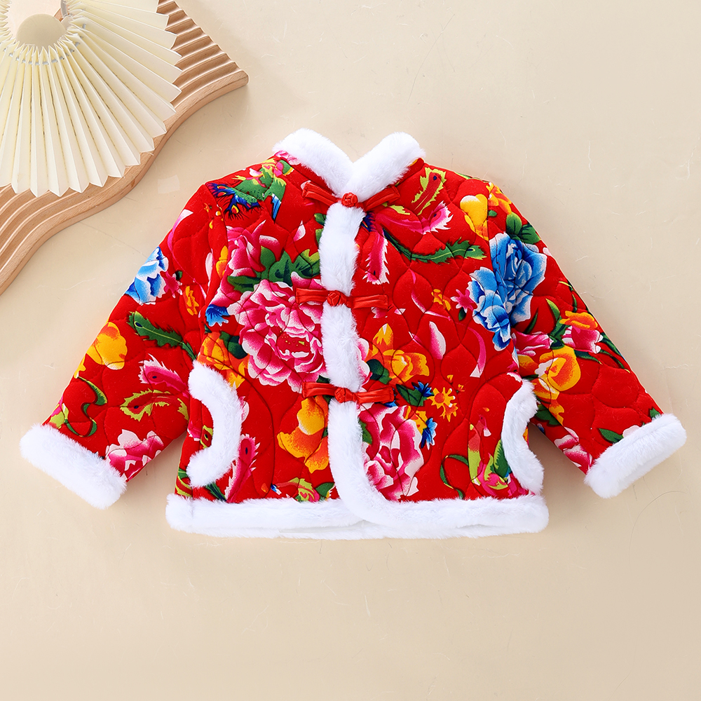 东北大花棉袄网红儿童新年过年衣服冬季保暖加绒加厚女宝宝拜年服