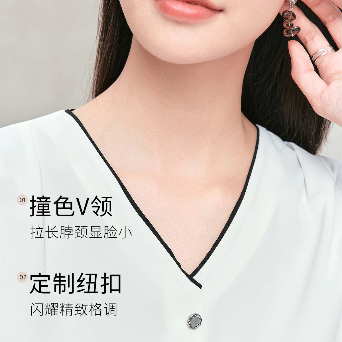 FINITY菲妮迪雪纺衫25年秋季新款简约气质V领白色优雅长袖上衣女