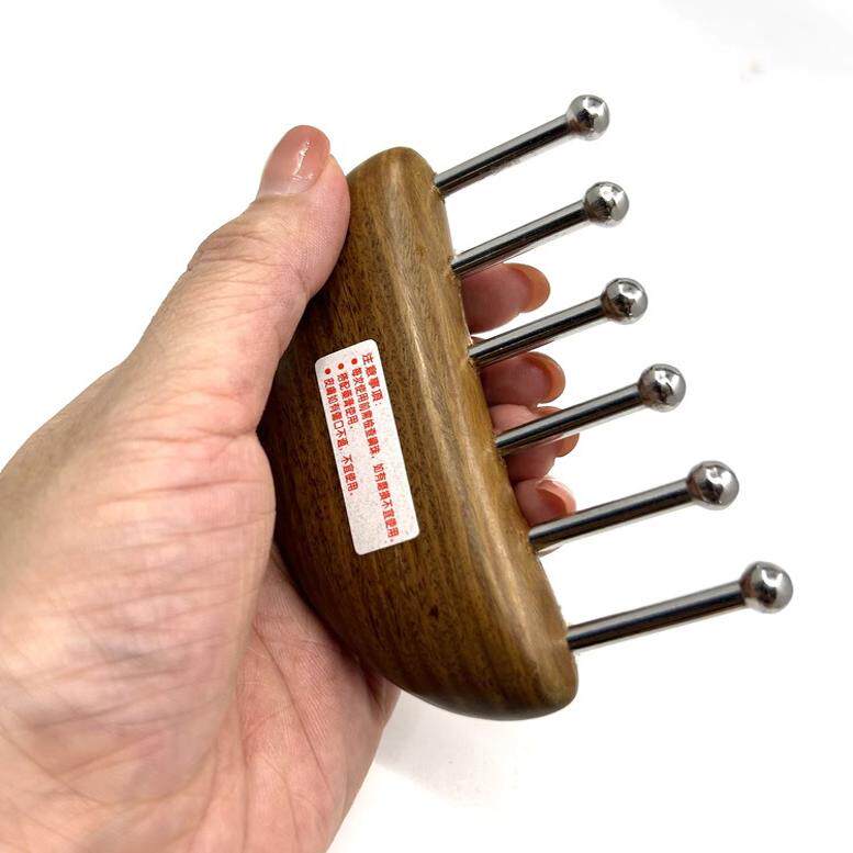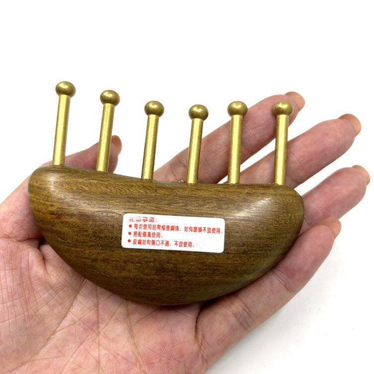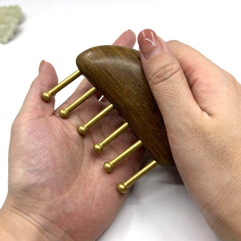 黄铜绿檀木按摩梳子304不锈钢无痕刮痧梳6齿铜按摩头疗梳刮痧器