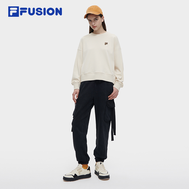 FILA FUSION斐乐潮牌卫衣女春秋纯棉时尚宽松纯色圆领针织套头衫