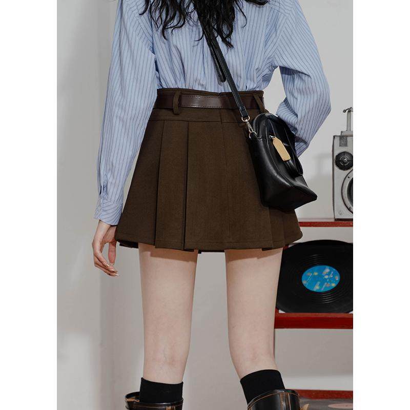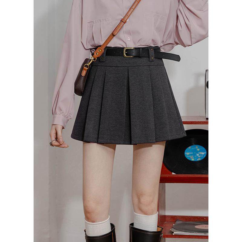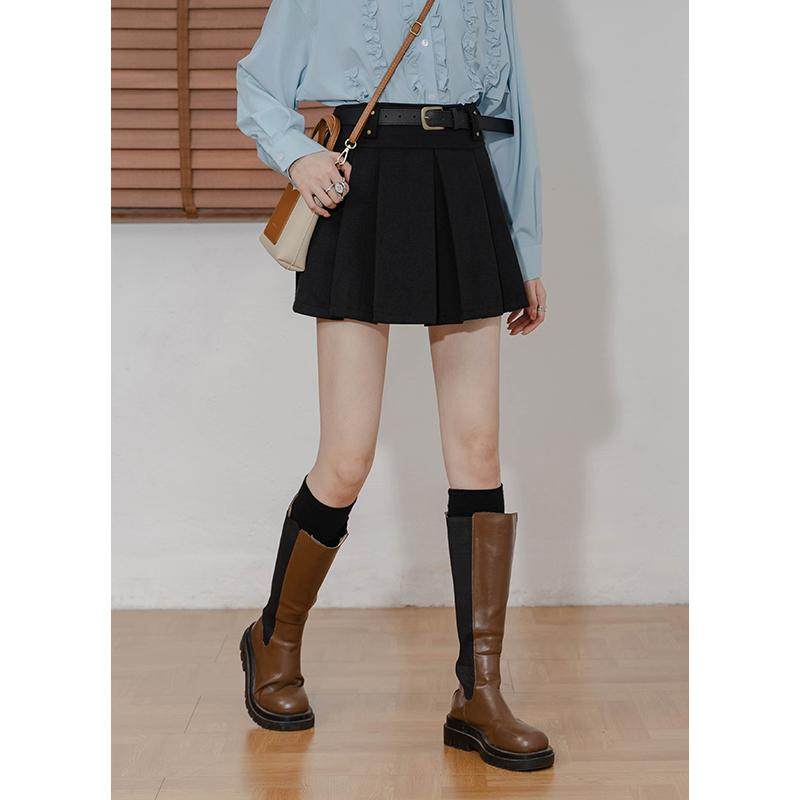 六条猫studio毛呢A字短裙女高腰百褶裙复古防走光内衬呢子半身裙