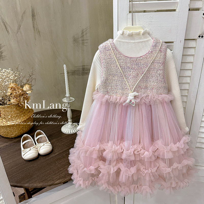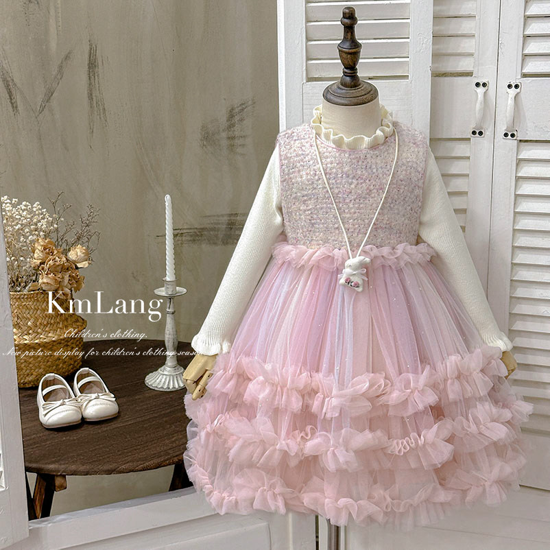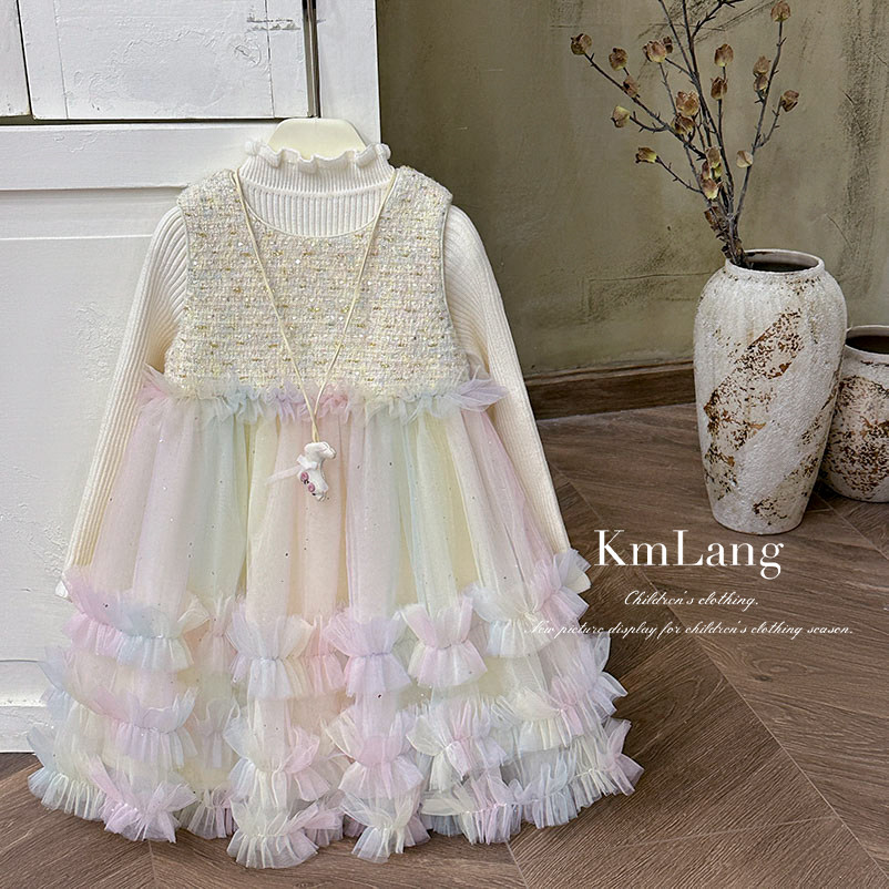 女童连衣裙秋冬2025新款纱裙儿童蛋糕公主裙加绒洋气时髦礼服裙子
