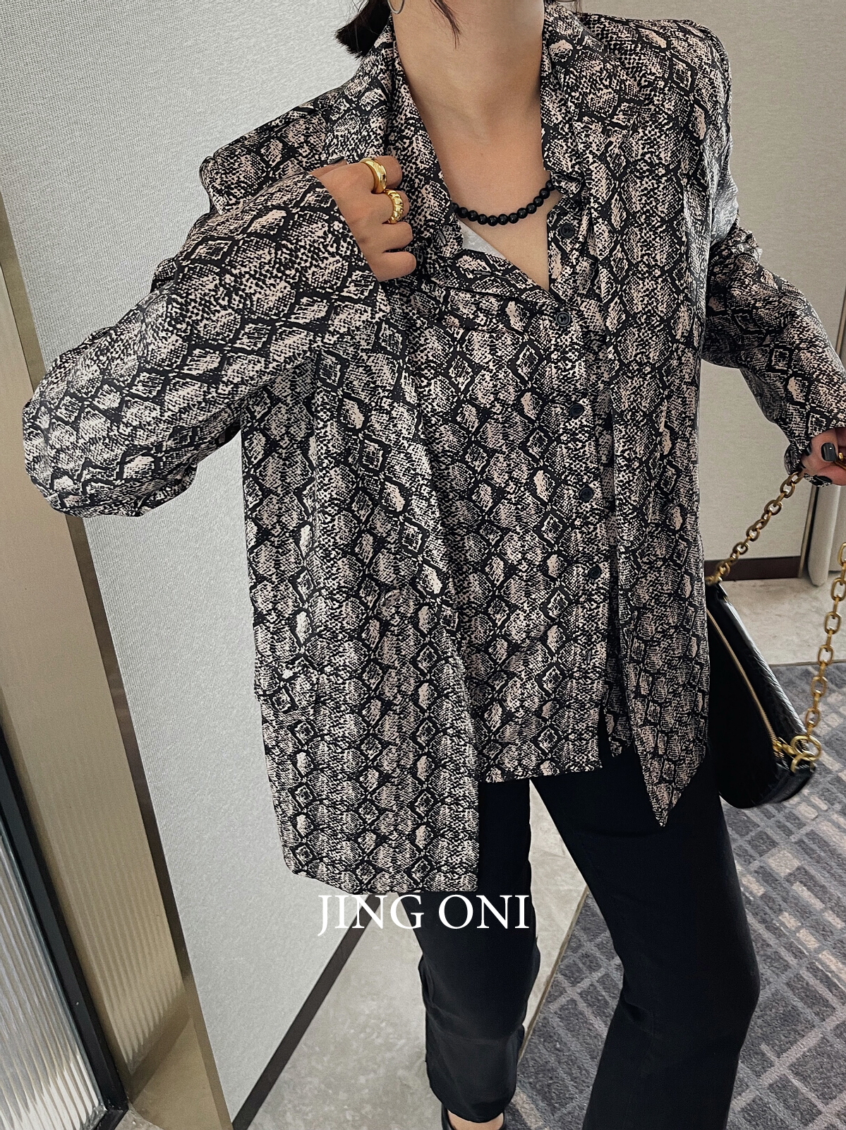 蛇纹西装外套女2025春季新款上衣西服宽松法式气质显瘦高级小个子
