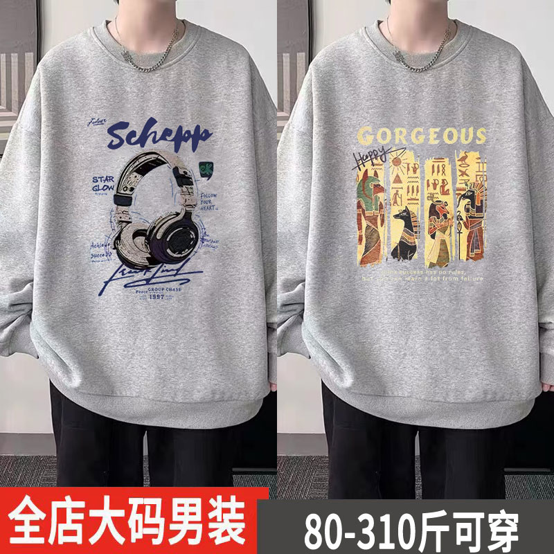 加肥加大男士美式重磅卫衣秋季衣服圆领长袖上衣潮牌秋冬大码男装
