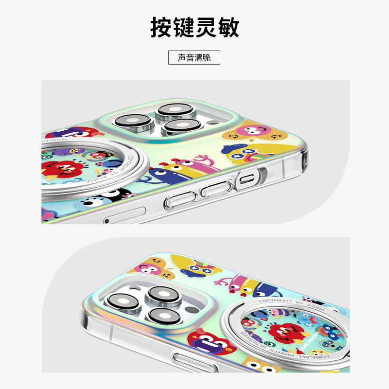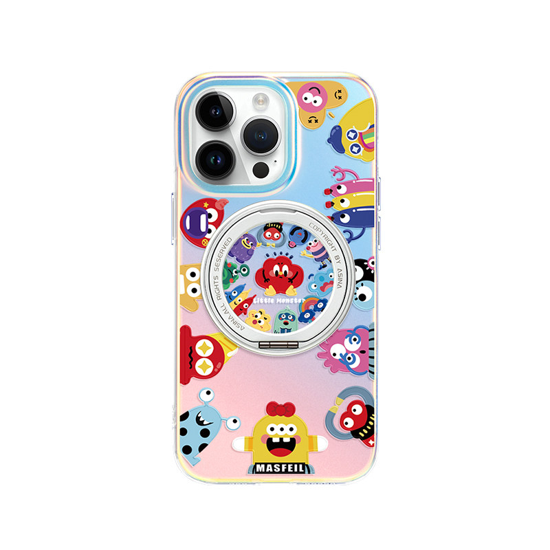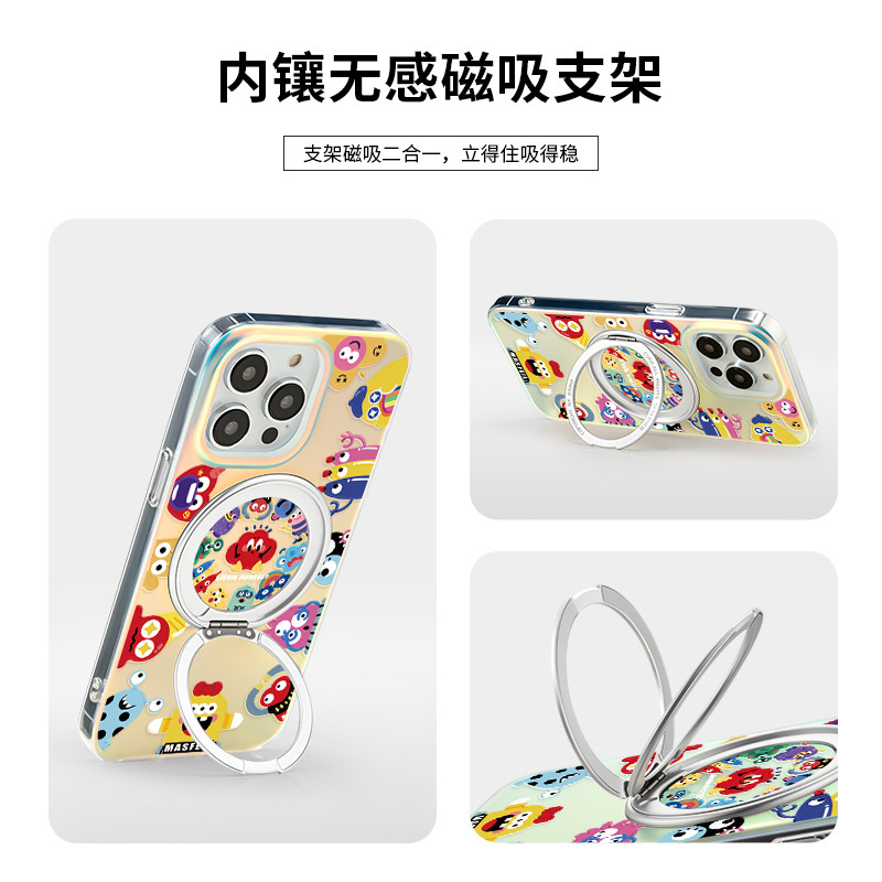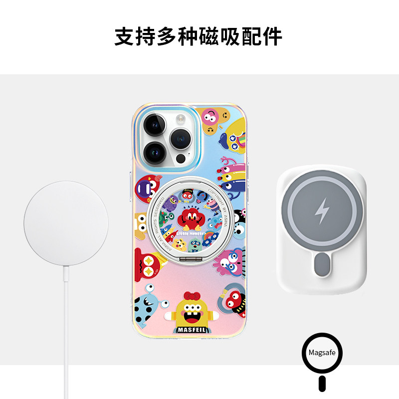 MASFEIL × 小怪兽家族适用苹果17Promax手机壳新款磁吸带支架iPhone16Pro保护套ip15支点高级女13pm全包Lo5