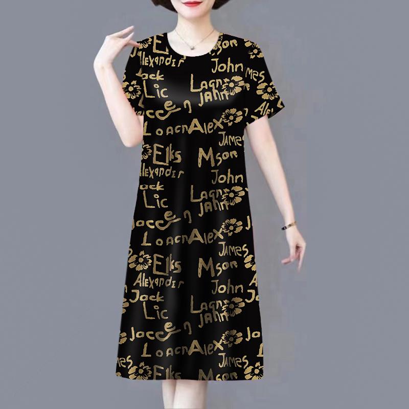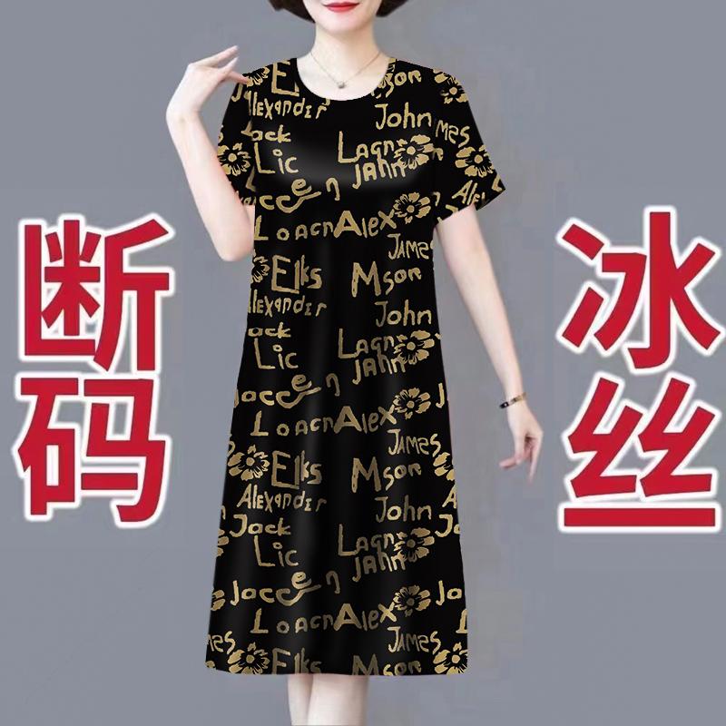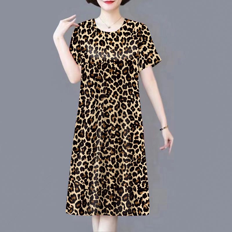 妈妈裙子豹纹冰丝凉感连衣裙