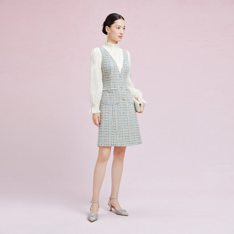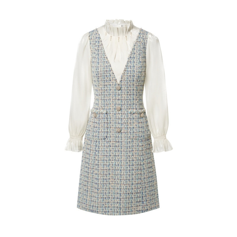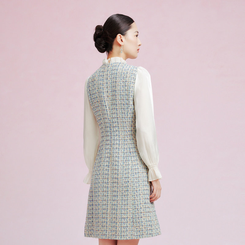 La Koradior拉珂蒂时尚 春季新款气质香风连衣裙花边领清新女裙
