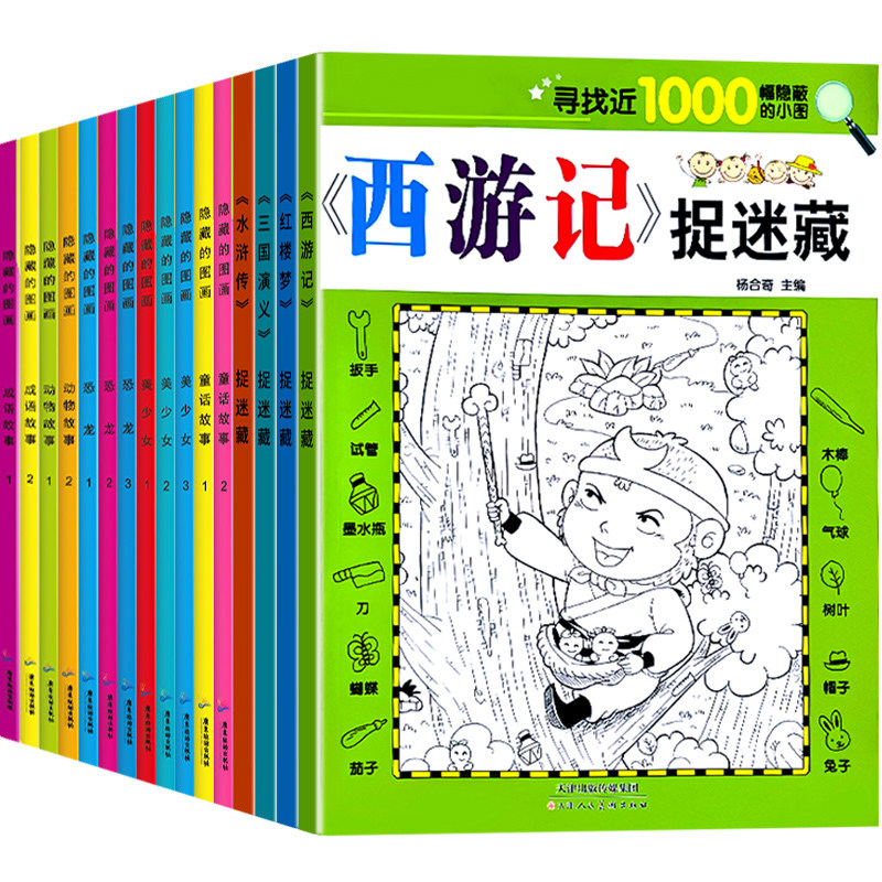 全套16册隐藏的图画找东西的图画书高难度幼儿童6-8-12岁找不同专注力训练岁以上捉迷藏小学生记忆力极限视觉挑战书四大名著美少女
