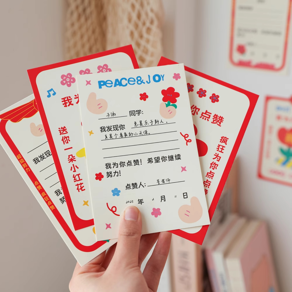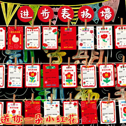 送你一朵小红花夸夸卡墙贴表扬心愿卡片悬挂学习目标墙班级教室文化墙装饰吊卡幼儿园学生我有话对你说留言卡