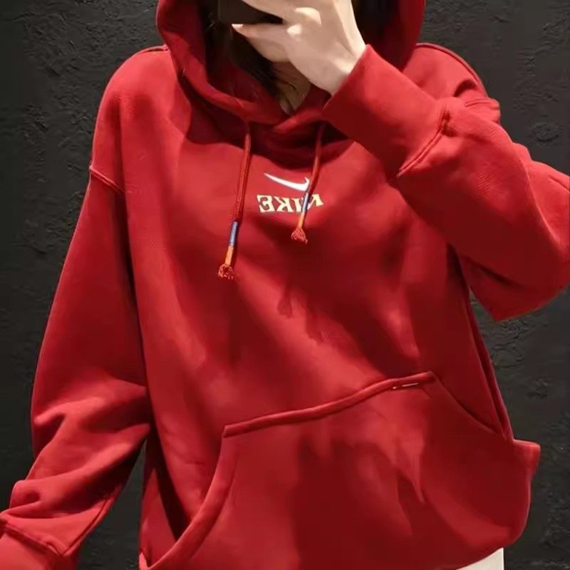 NIKE耐克马年新年款红色卫衣女装2026春季运动服本命年连帽套头衫