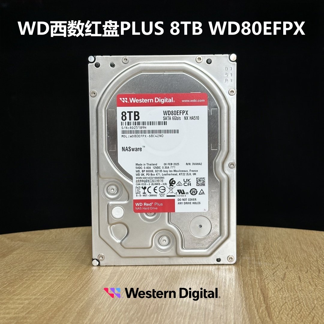 盒装国行WD西数3.5寸8T红盘PLUS SATA3 WD80EFPX NAS服务器硬盘