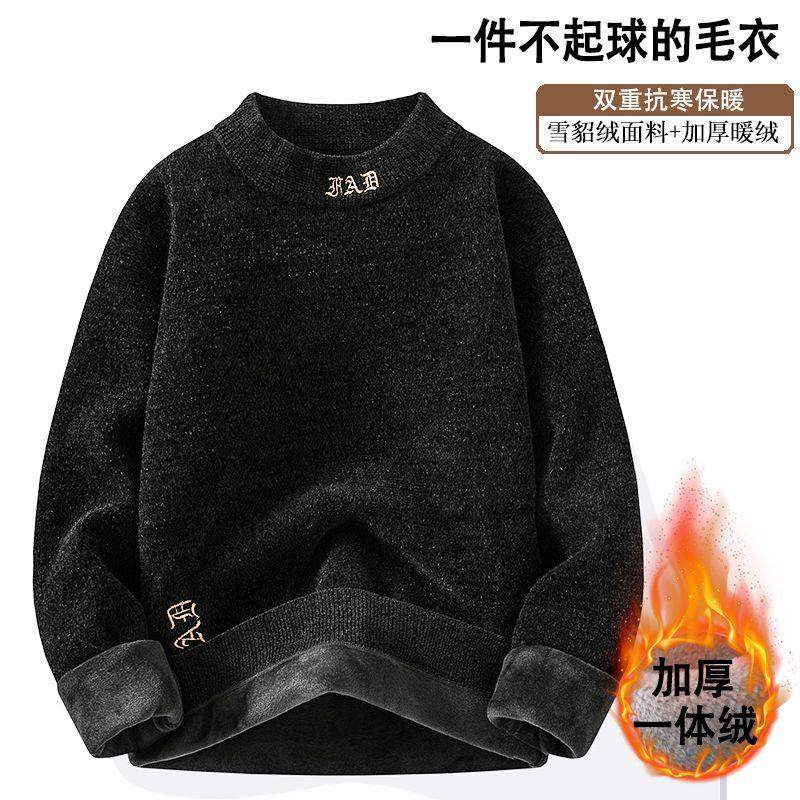 Yishion以纯男装正品官店雪貂加绒毛衣男士加厚加绒保暖长袖休闲