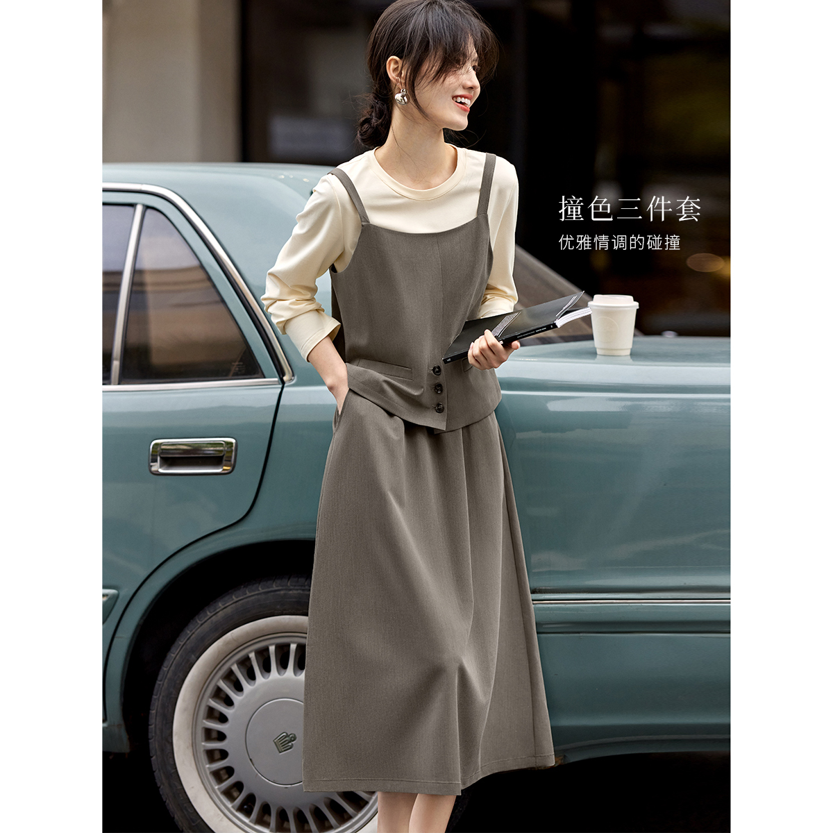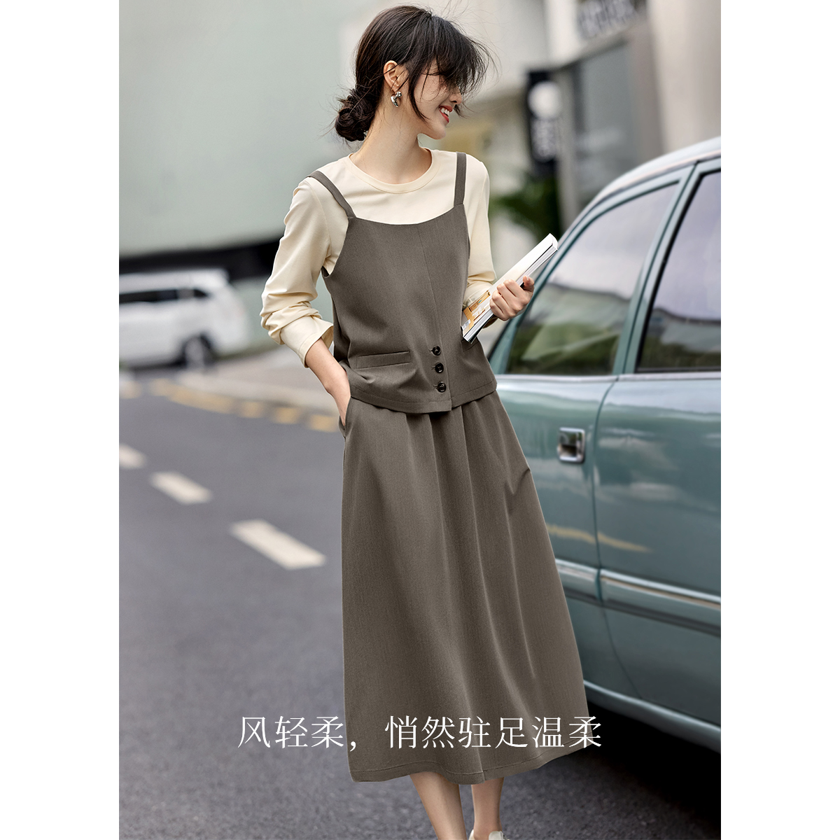 XWI欣未今年流行休闲套装女2025春季知性吊带打底衫半身裙三件套