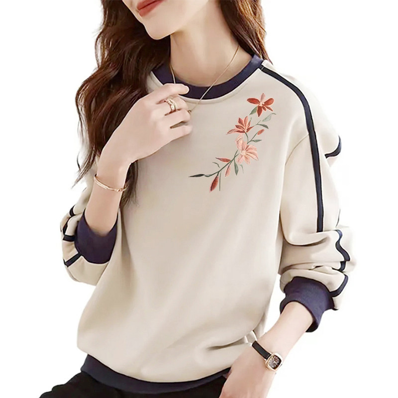外贸出口品牌清仓纯棉时尚印花长袖卫衣女春秋款百搭显瘦拼色上衣