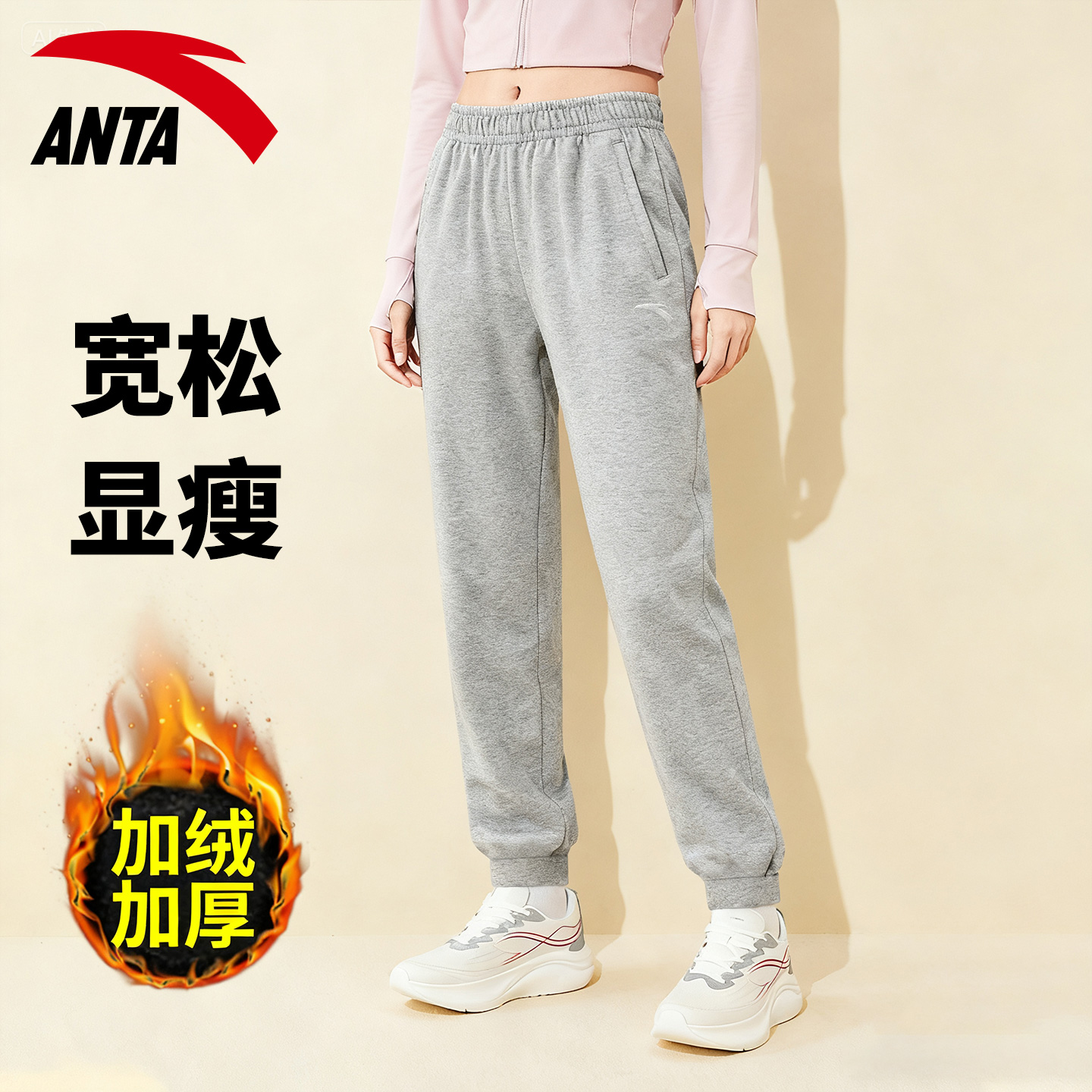 安踏运动裤女加绒休闲卫裤2025秋冬季新款宽松加厚长裤百搭裤子女