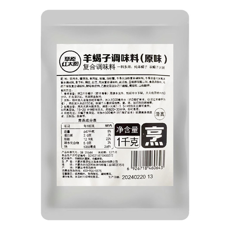 草原红太阳羊蝎子原味香辣调味料1kg商用京味清真炖羊排火锅底料