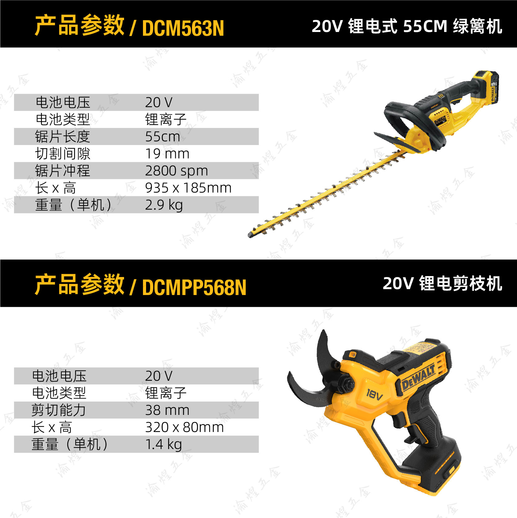 得伟20V锂电修枝机DCMPP568园林树木修枝剪断户外绿篱机DCM563