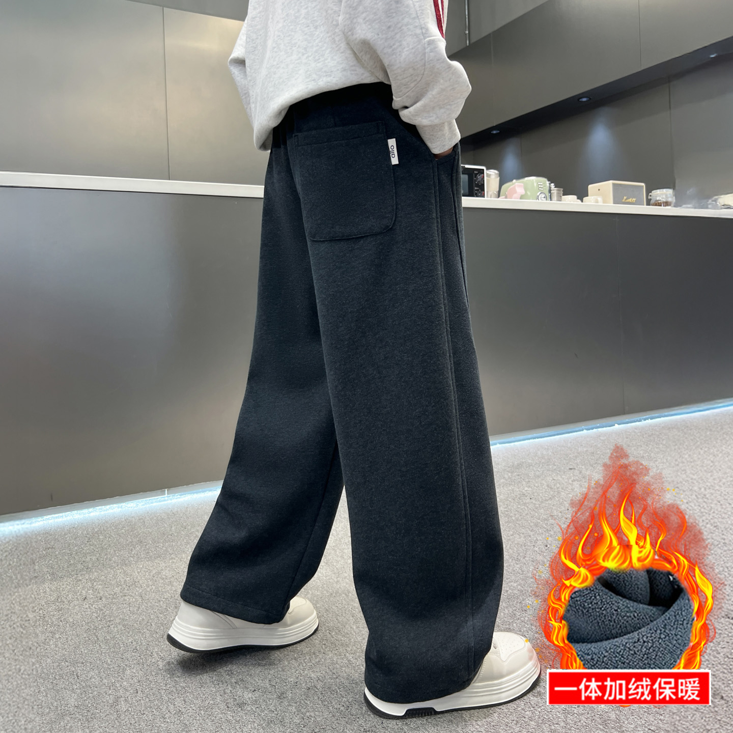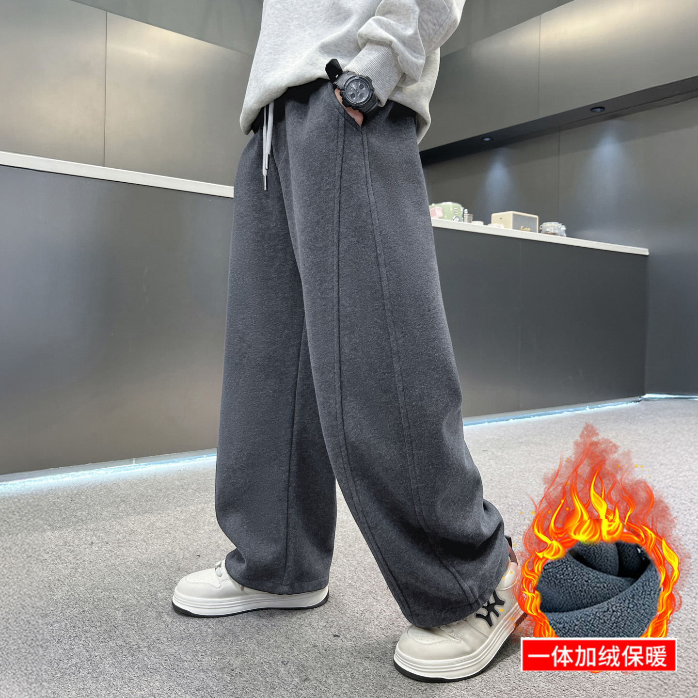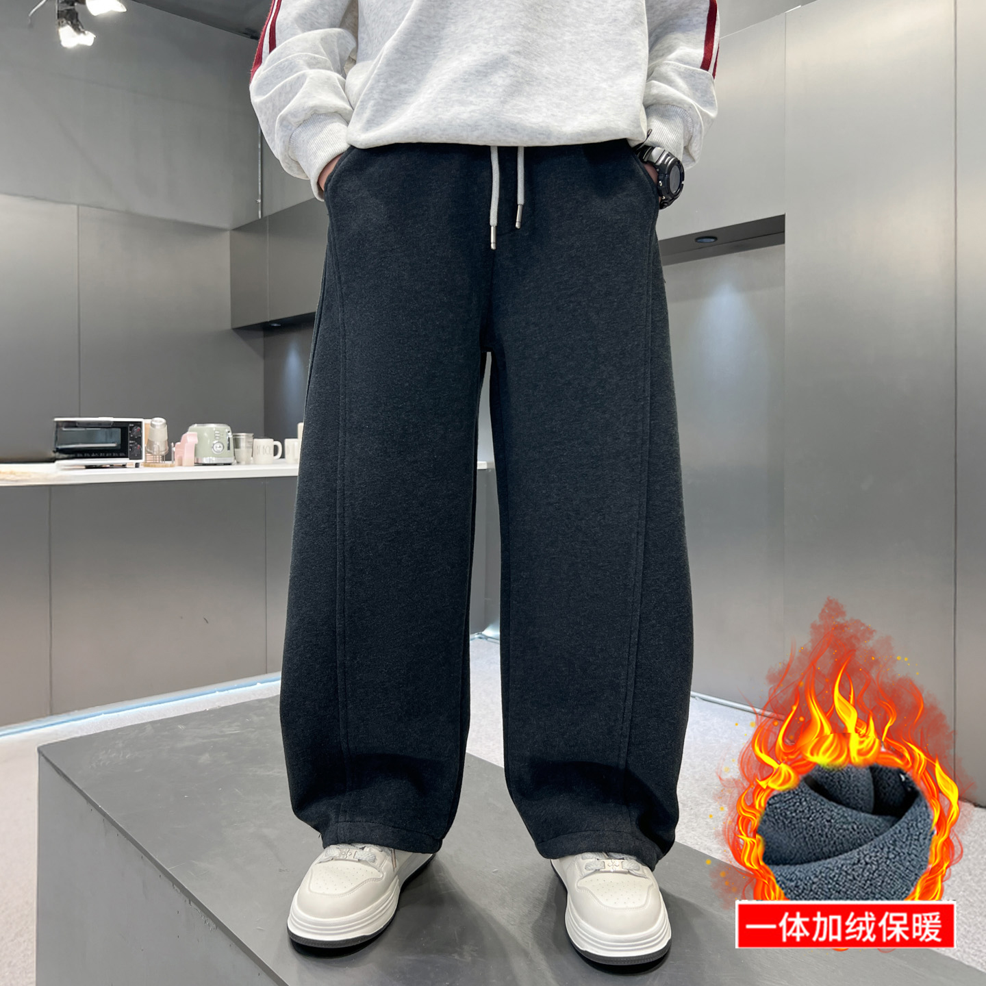 男童秋冬加绒裤子中大童男孩加厚卫裤儿童哈伦裤休闲针织裤潮灰色