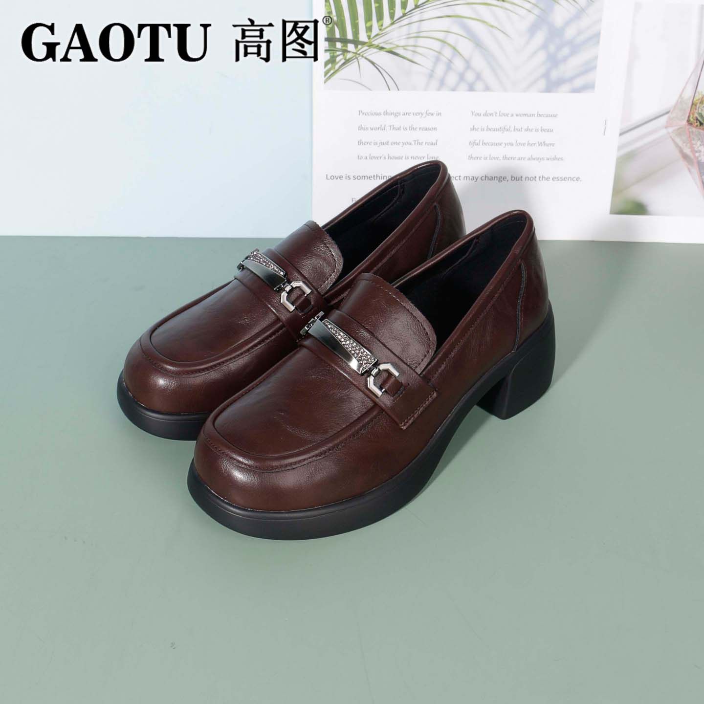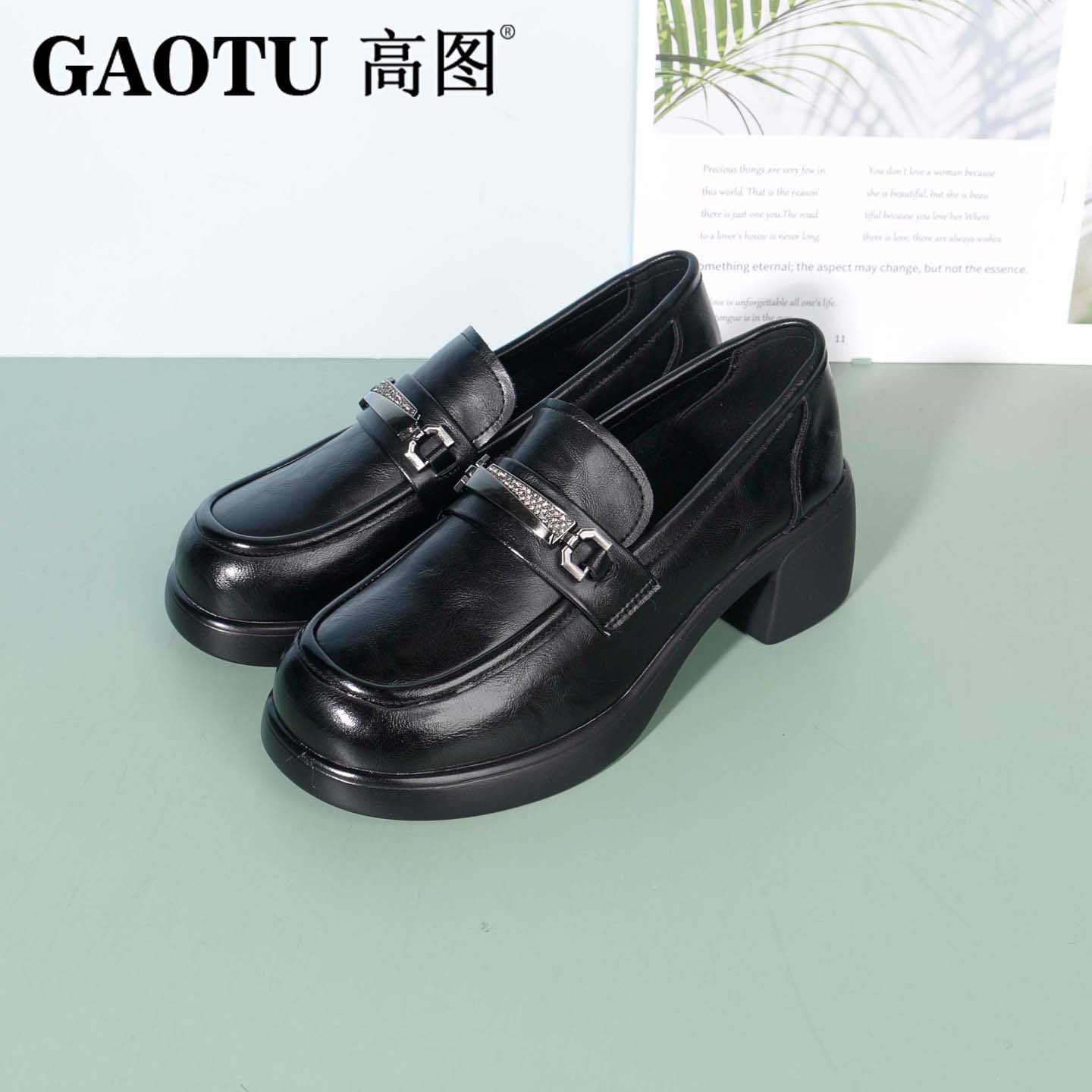 高图时尚乐福鞋女2025秋季新款圆头粗跟英伦风小皮鞋2554-60752