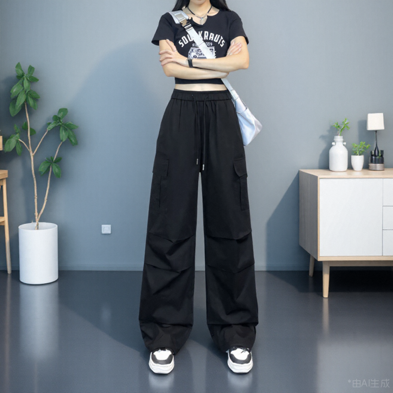 高腰直筒工装裤女春夏新款美式休闲爵士宽松机能户外阔腿运动裤子