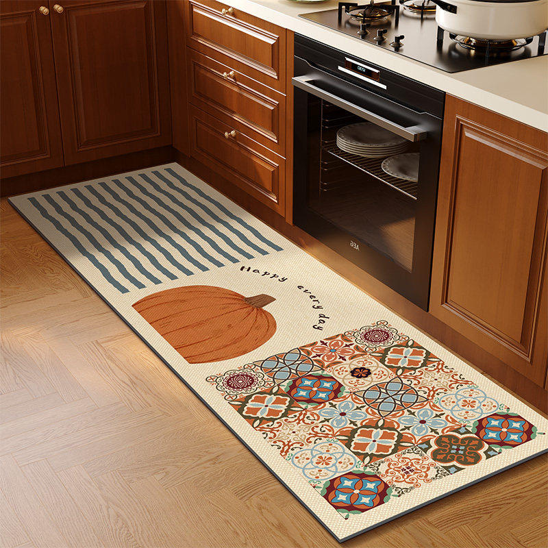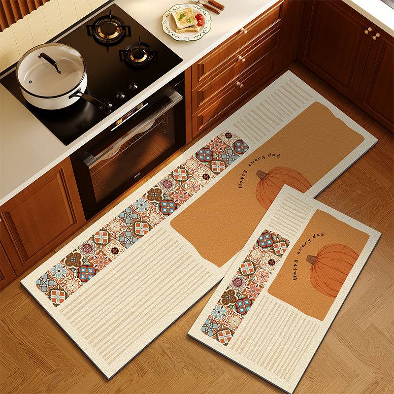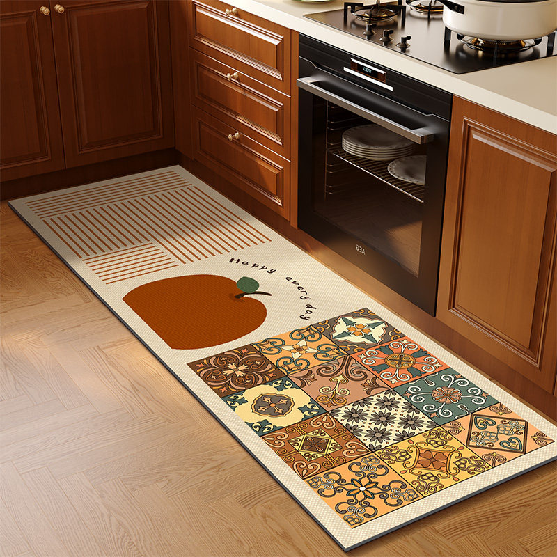 美式复古厨房地垫防滑防油可擦免洗pvc厨房地毯防水长条皮革脚垫