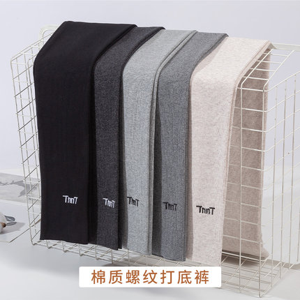打底裤女春秋季外穿薄款黑色螺纹棉高腰紧身弹力大码秋裤小脚长裤