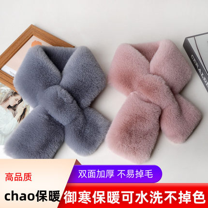 兔毛围巾女冬季加厚保暖双面百搭濑兔毛脖套护颈仿皮草獭兔毛围脖