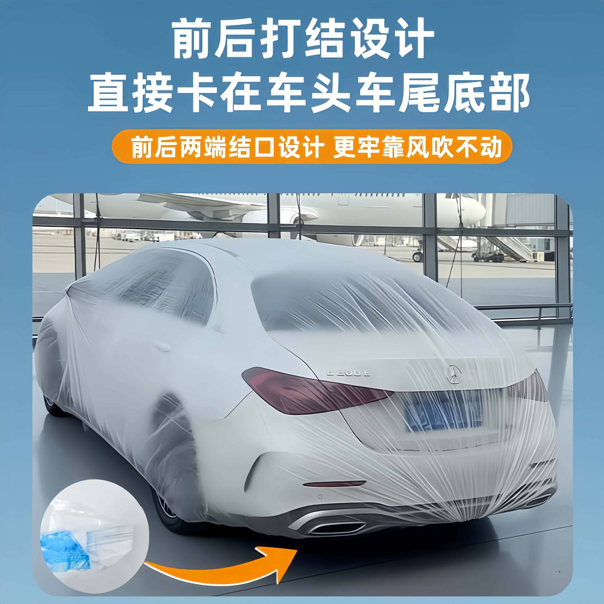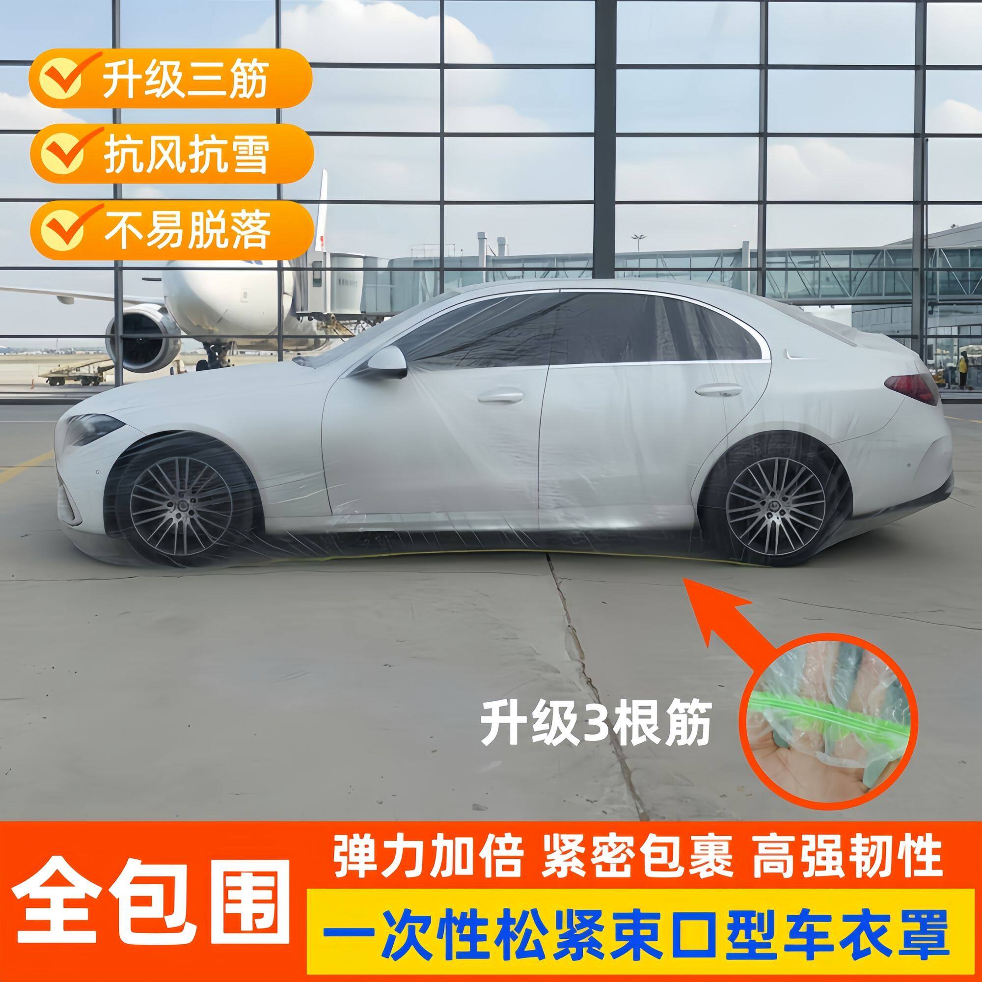 一次性车衣罩松紧束口防尘防雪汽车罩四季通用加厚全包围塑料户外