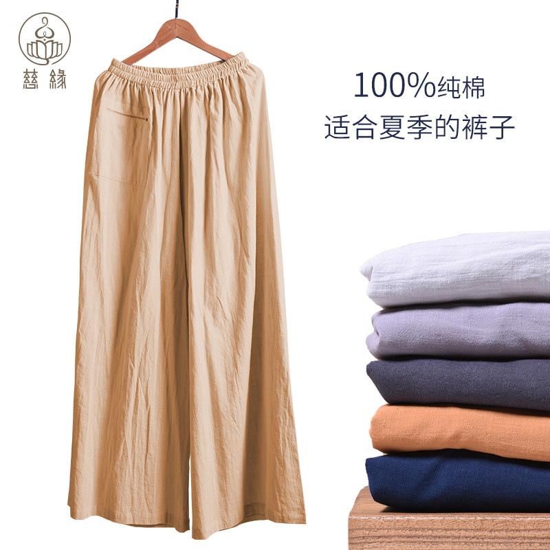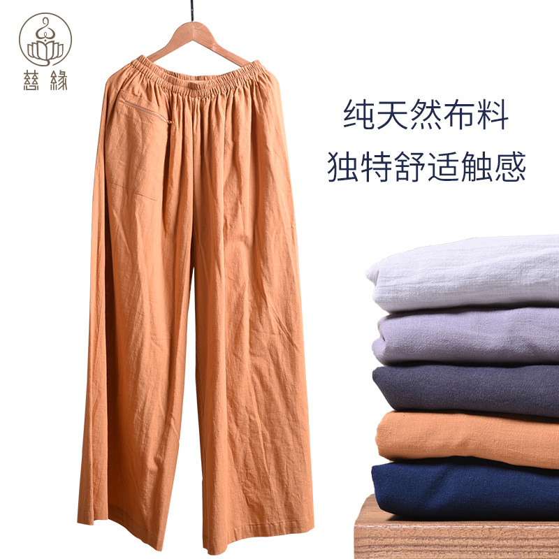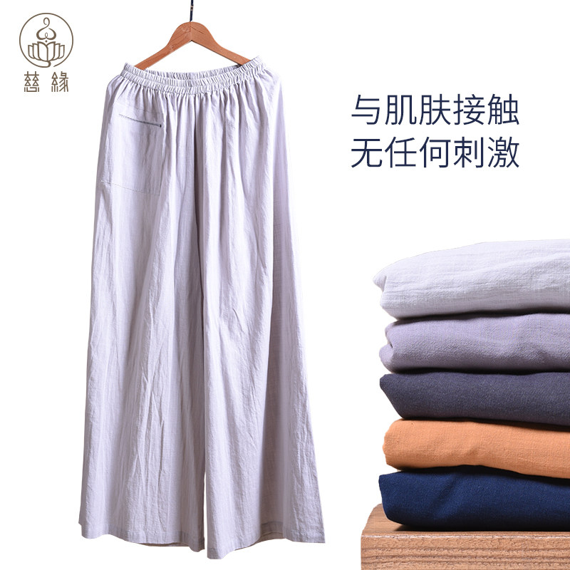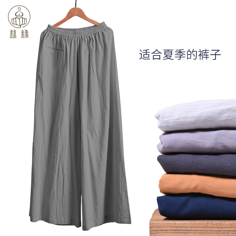 慈缘夏季薄款男士原创中国风长裤纯色舒适宽松亚麻棉麻和尚服僧裤
