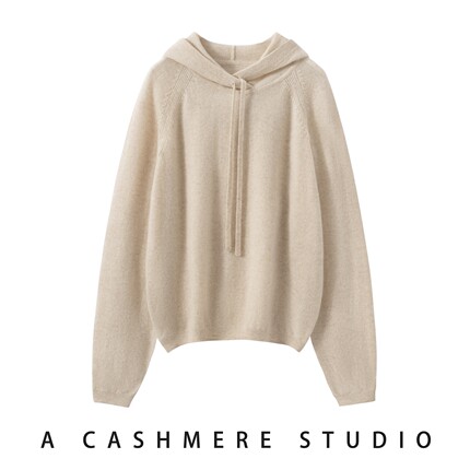 2025秋冬新款连帽宽松百搭羊绒衫女卫衣100%纯山羊绒针织毛衣打底